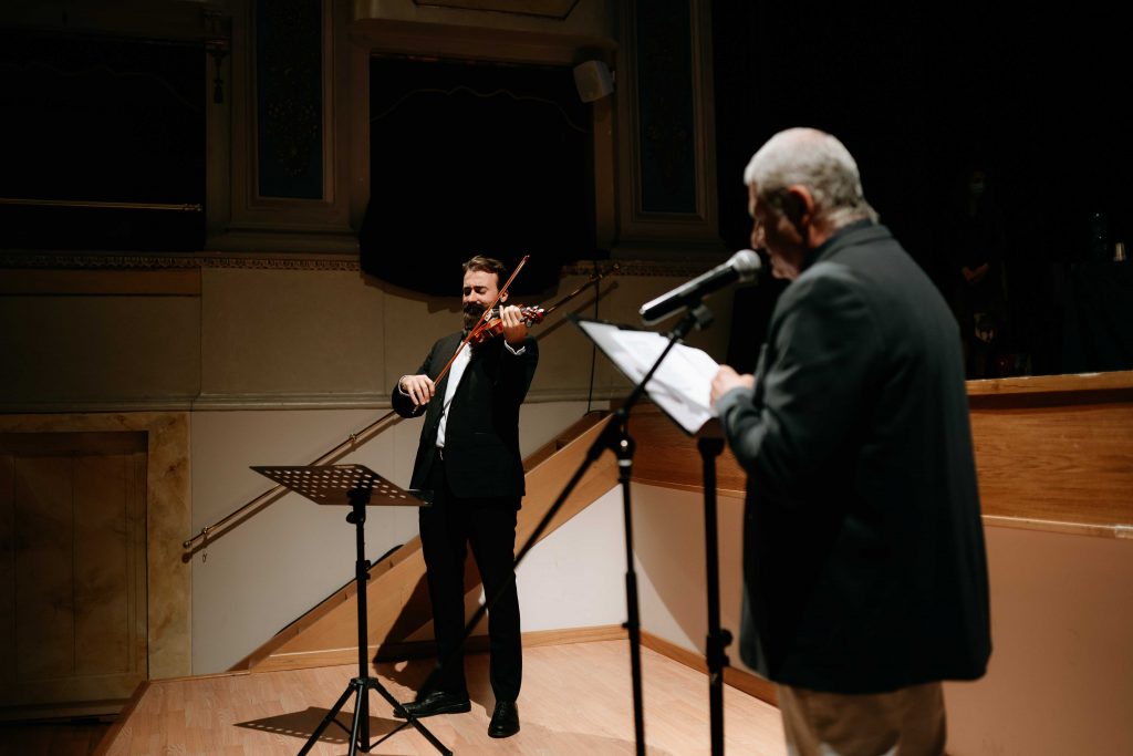 La musica del violinista Andrea Granatiero e le parole di Mario Carafòli lette da Paolo Pirani hanno dato inizio alla cerimonia di premiazione.