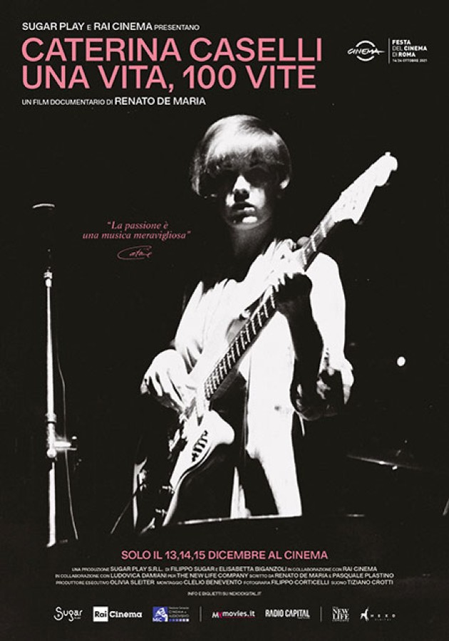 Distribuito da Nexo Digital nelle migliori sale italiane, Caterina Caselli – Una vita, 100 vite si avvale della partecipazione straordinaria di Paolo Conte e Francesco Guccini, di Andrea Bocelli, Elisa, i Negramaro ed Ennio Morricone. L’ampio materiale di repertorio, comprese naturalmente tante canzoni, fanno del lavoro di De Maria un documentario in grado di aprire uno squarcio suggestivo sul mondo della cultura italiana, dagli anni della Beat generation fino ai giorni nostri.