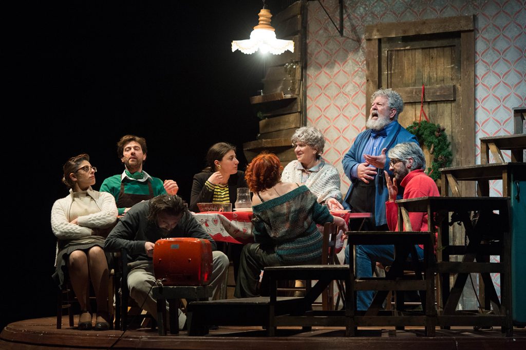 “Un Natale in famiglia, nel paesino d’origine, come ogni anno da tanti anni. Un Natale pieno di ricordi – scrive Luciano Melchionna nelle note di regia – e di regali da scambiare, in questo rito stanco che resta l’unico appiglio possibile per tentare di ravvivare i legami famigliari, come il fuoco del braciere che i genitori anziani usano, ancora oggi, per scaldare la casa: un braciere pericoloso ma rassicurante come tutte le abitudini e le tradizioni. Un Natale a casa dei genitori anziani che aspettano tutto l’anno quel momento per rivedere i figli cresciuti, andati a lavorare in altre città. Uno sbarco di figli e parenti affettuosi e premurosi che si riuniscono, ancora una volta, per cercare di spurgare le nevrosi e le stanche dinamiche di coppia di cui sono ormai intrisi, in un crescendo di situazioni esilaranti e stridenti in cui tutti noi possiamo riconoscerci”.