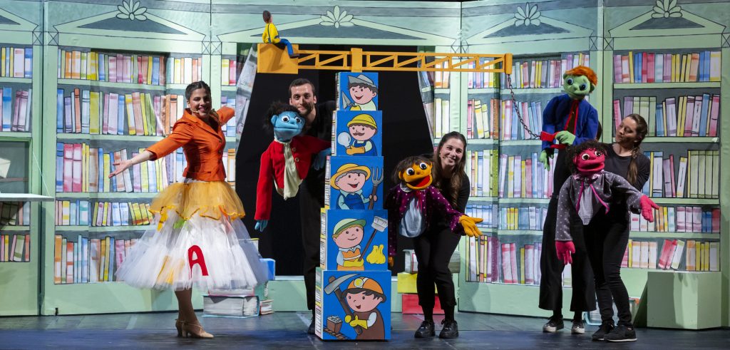Quattro scolari un po’ burloni (Alessia Ancillai, Lorenzo Filoni, Chiara Menichelli, Emma Ray Rieti) trascorrono un’intera mattinata in biblioteca, ma grazie a una maestra un po’ particolare (Alice Capitolo), la stanza dei libri si trasforma in una scatola magica: sul palcoscenico, filastrocche, canzoni e giochi prendono vita in un susseguirsi di bizzarre situazioni.