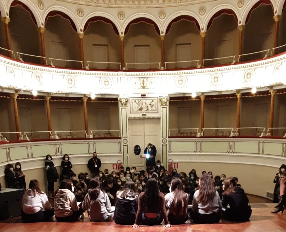 Lo spettacolo – una produzione di Collettivo CollegaMenti e Associazione Ventottozerosei – promosso da Amat e Comune di Montemarciano-Assessorato alla Cultura, con la collaborazione dell’Associazione Ventottozerosei, il sostegno dei Comuni di Montemarciano, Chiaravalle, Ancona, Corinaldo, Sirolo e il patrocinio e contributo della Commissione per le pari opportunità tra uomo e donna della Regione Marche ha avuto una piacevole anteprima martedì 15 marzo alle ore 9.30 al Teatro “V. Alfieri” dove gli studenti delle classi di terza media dell’Istituto comprensivo Montemarciano-Marina hanno incontrato l’ideatrice e regista Simona Lisi e le attrici dello spettacolo Francesca Berardi, Silvia Bertini, Martina Ferraioli, Francesca Zenobi.