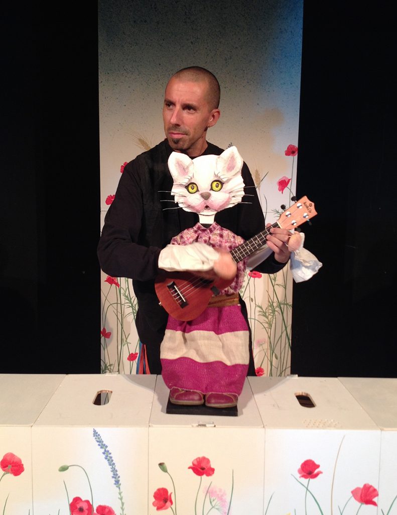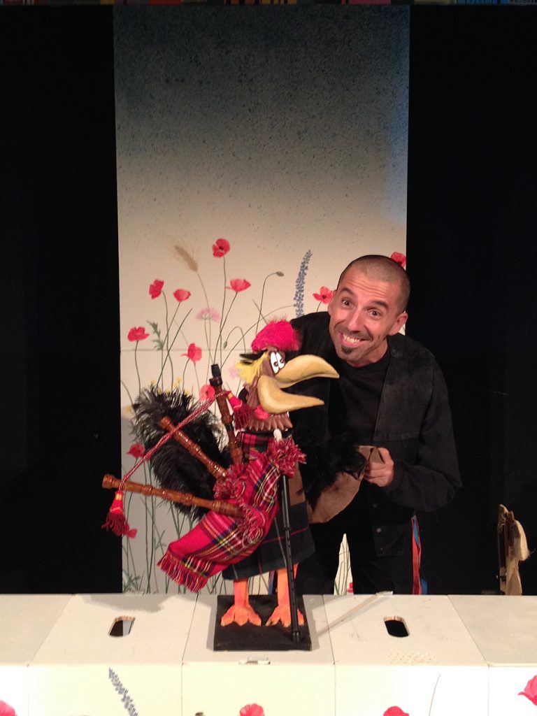 “Ma – dice il Nonno – tutte le storie, anche le più belle, anche quelle più gentili, prima o poi diventano cattive, amare, pericolose. La musica cambia e quello che era bello diventa brutto, quello che era chiaro diventa oscuro. Non potevano sapere i Musicanti che quella era la casa dei Briganti!” In scena, un campo di papaveri a perdita d’occhio, Brema all’orizzonte e pupazzi che suonano (veramente) meravigliose musiche della tradizione folk francese. L’Asino suona l’organetto, il Cane la grancassa, il Gatto l’ukulele, il Gallo la cornamusa. E i briganti cosa suonano?! La chitarra elettrica.