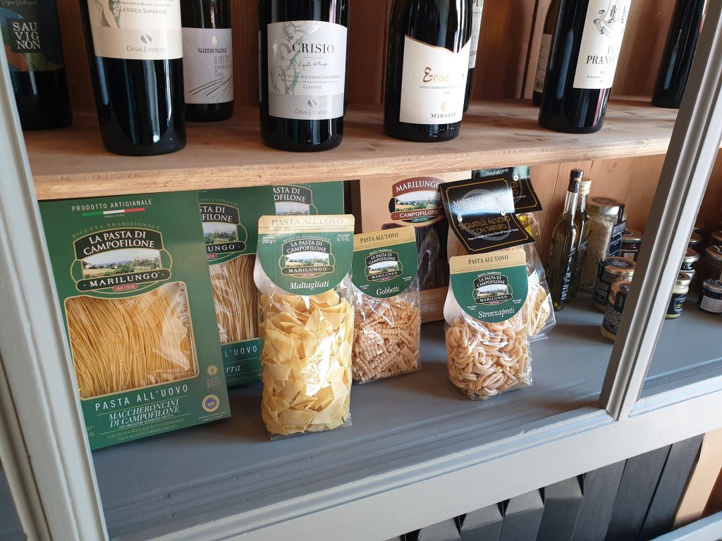 La cucina Marchigiana, esige anche che i piatti siano accompagnati da vini di ottima qualità. A questo ha pensato il noto barman jesino Damiano Tamellin, anche lui socio, jesino, molto conosciuto, perché per anni ha servito e fatto degustare vini in uno dei più importanti locali della cittadina di Federico II.