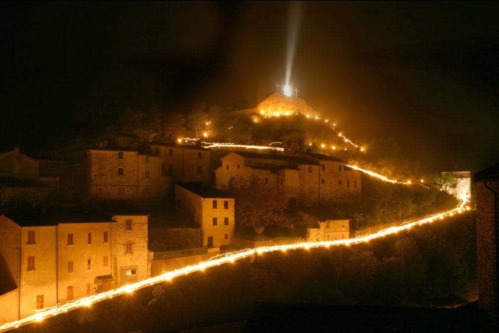 Nella Piazza Luceoli, verrà messa in scena la condanna del Cristo cui seguirà la celebre “fiaccolata”, sulle pendici del colle di Sant’Ubaldo.