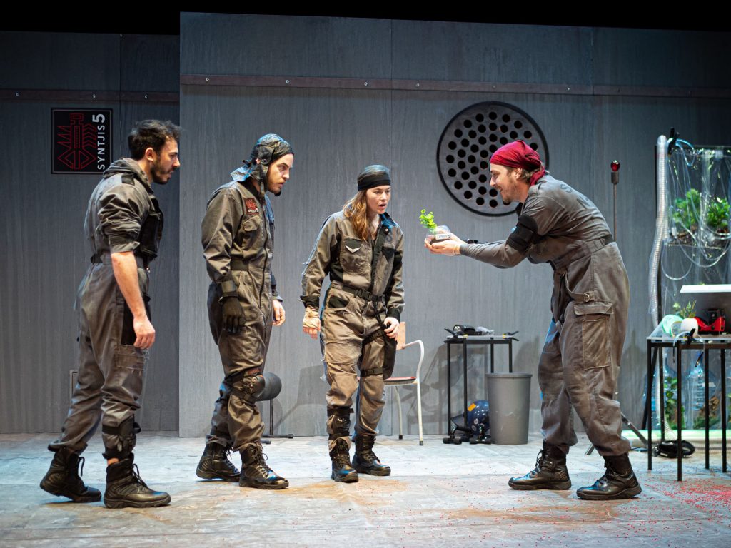 Vista da qui è uno spettacolo distopico, a voler cercare delle definizioni. Racconta di quattro sopravvissuti al disastro della Terra, spediti su Marte per tentare di dare avvio a una nuova umanità, avendo con sé cinquanta bambini criogenizzati. L’inizio di una nuova era, ma anche la fine di un’altra, con tutto quello che entrambi i passaggi comportano. E che è davvero enorme, in termini di riflessioni e pensieri sul senso ultimo del nostro stesso essere. Vista da qui dà voce a una profonda critica a quello che è stato il nostro stare sul pianeta, al disastro ambientale compiuto, al baratro cui stiamo per affacciarci, di cui l’aspetto ambientale è solo quello più urgente.