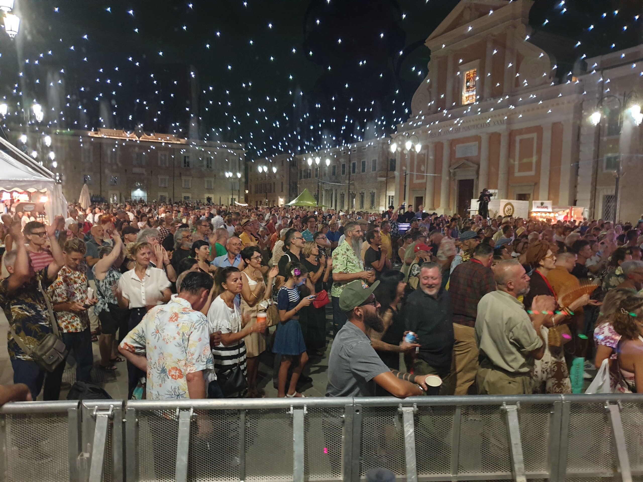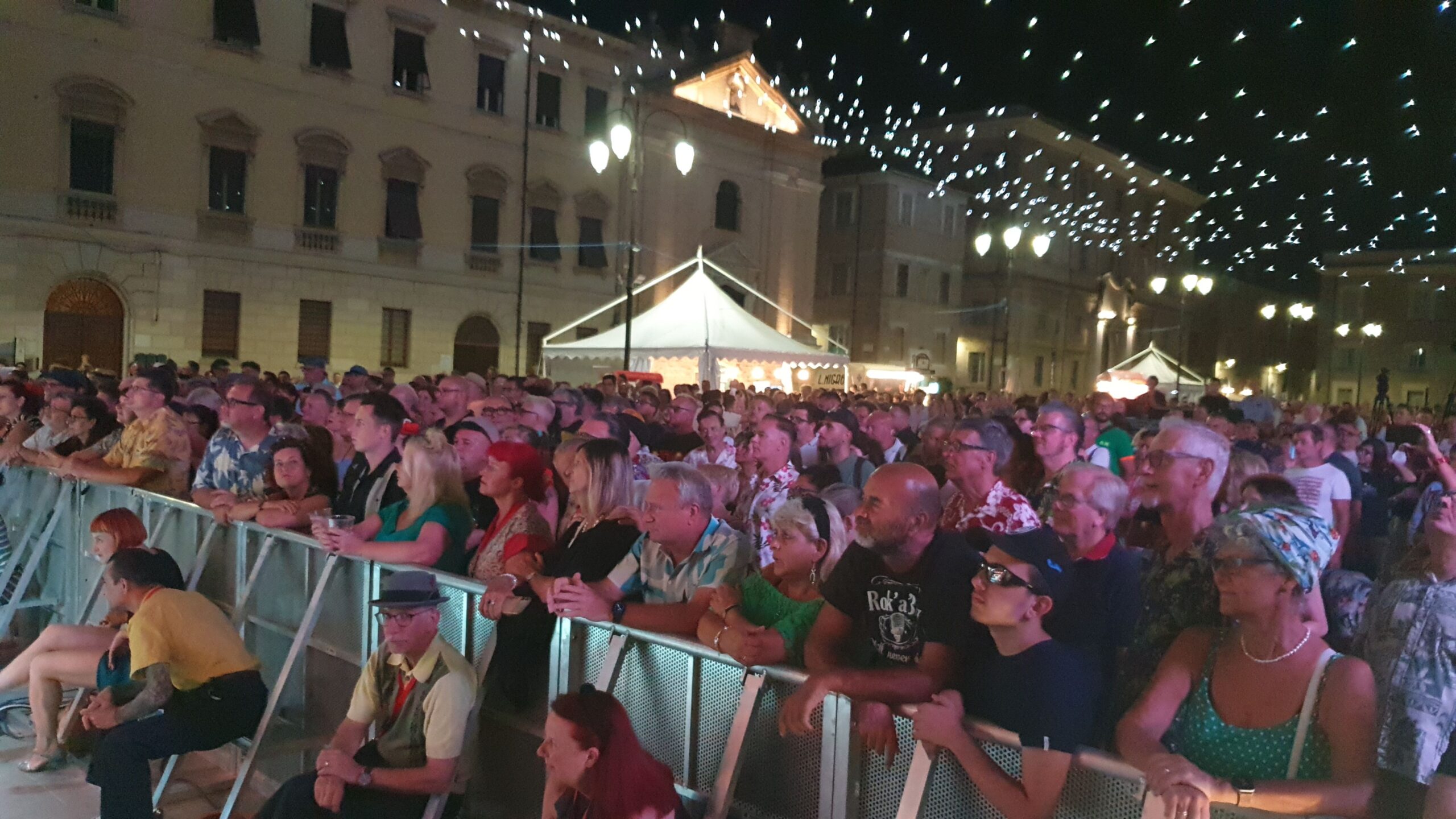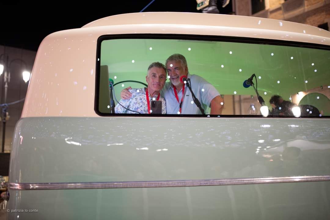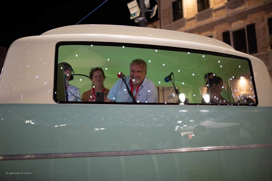 Quasi un’ora e mezza di musica mozzafiato con tre bis. Accidenti! E chi se lo sarebbe aspettato. E al termine ancora fiato e spirito per salutare amici e fans (alcuni giunti da molto lontano) e disponibili a una miriade di selfie. Alla faccia di qualche nostro artista nazionale che fa il prezioso o peggio pure se la tira… E la piazza? Una distesa compatta che si muoveva ad onda (c’era ovviamente chi ballava). E prima di tutto questo una visita alla roulotte di Radio Arancia accolto da Gigio Brecciaroli insieme a Raffaela Lattanzi e Felix: quattro chiacchiere, qualche commento e sempre una piacevole compagnia. E prima di lasciare la piazza l’incontro con Greg: sarà con due diverse band protagonista di diverse serate a iniziare dal 3 agosto dove però la stella indiscussa è Chubby Checker, ‘inventore del Twist.