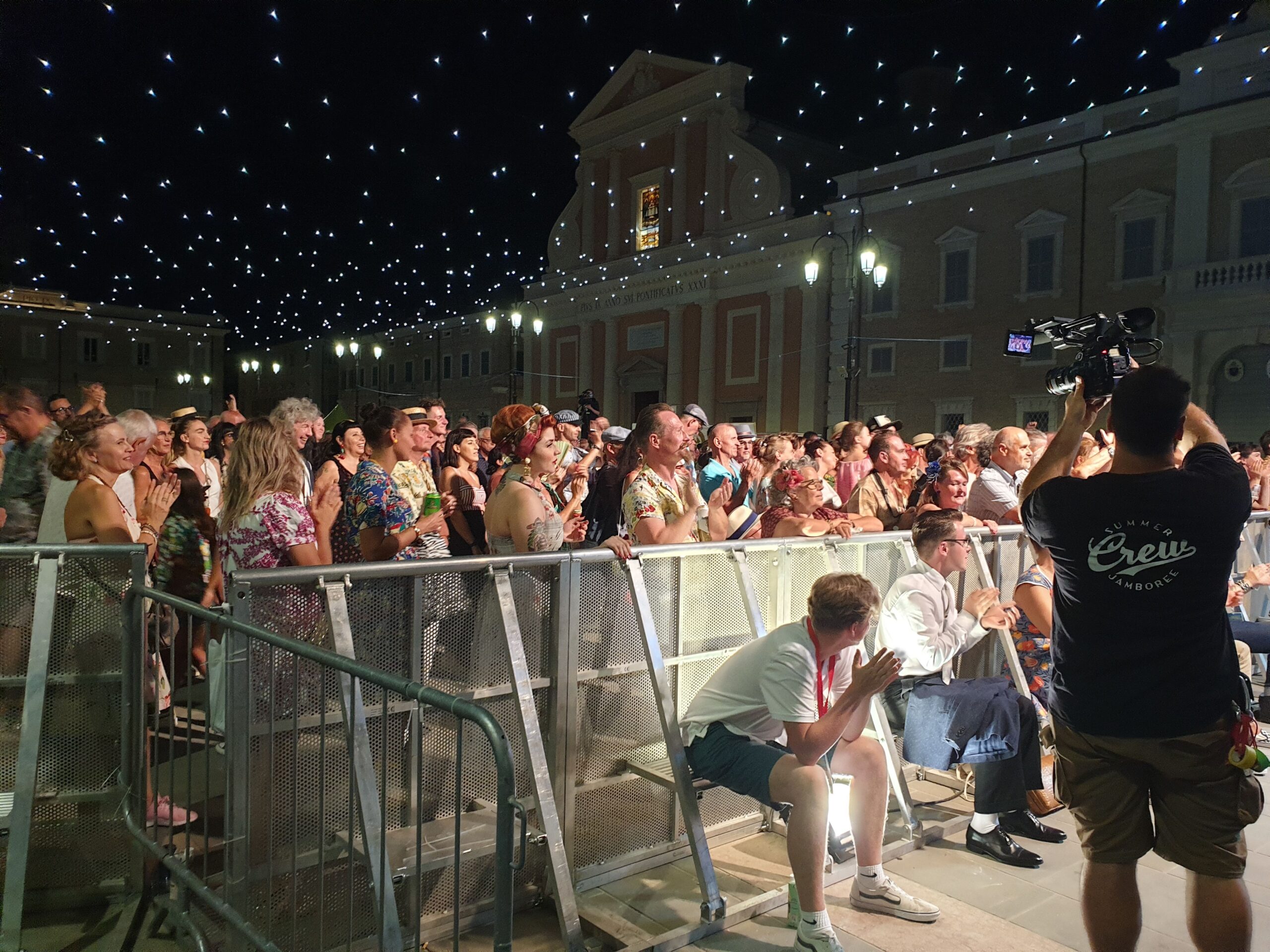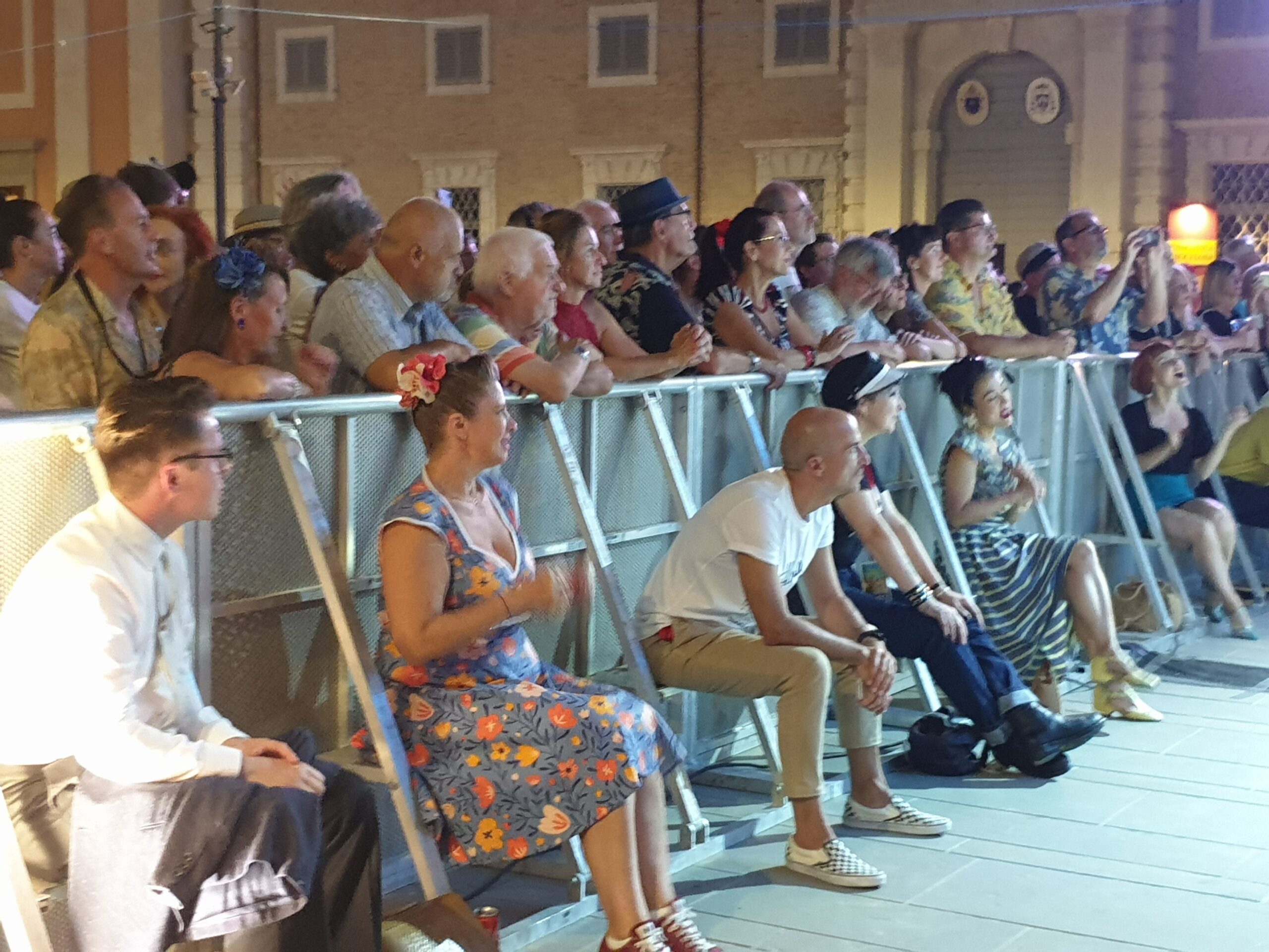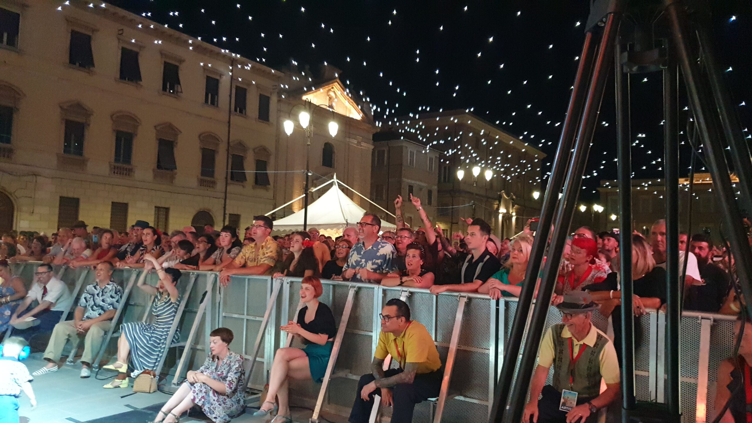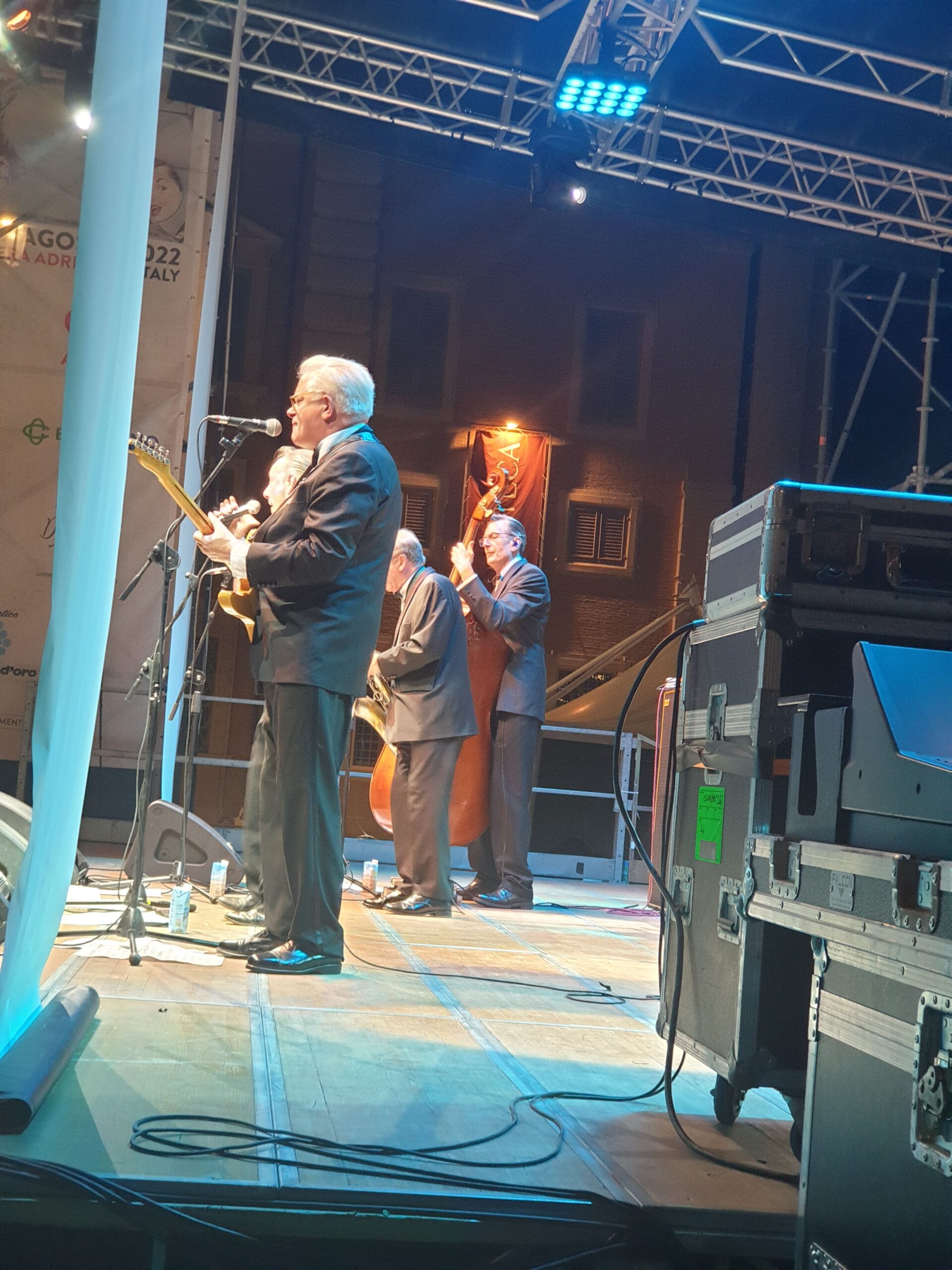 Quasi un’ora e mezza di musica mozzafiato con tre bis. Accidenti! E chi se lo sarebbe aspettato. E al termine ancora fiato e spirito per salutare amici e fans (alcuni giunti da molto lontano) e disponibili a una miriade di selfie. Alla faccia di qualche nostro artista nazionale che fa il prezioso o peggio pure se la tira… E la piazza? Una distesa compatta che si muoveva ad onda (c’era ovviamente chi ballava). E prima di tutto questo una visita alla roulotte di Radio Arancia accolto da Gigio Brecciaroli insieme a Raffaela Lattanzi e Felix: quattro chiacchiere, qualche commento e sempre una piacevole compagnia. E prima di lasciare la piazza l’incontro con Greg: sarà con due diverse band protagonista di diverse serate a iniziare dal 3 agosto dove però la stella indiscussa è Chubby Checker, ‘inventore del Twist.