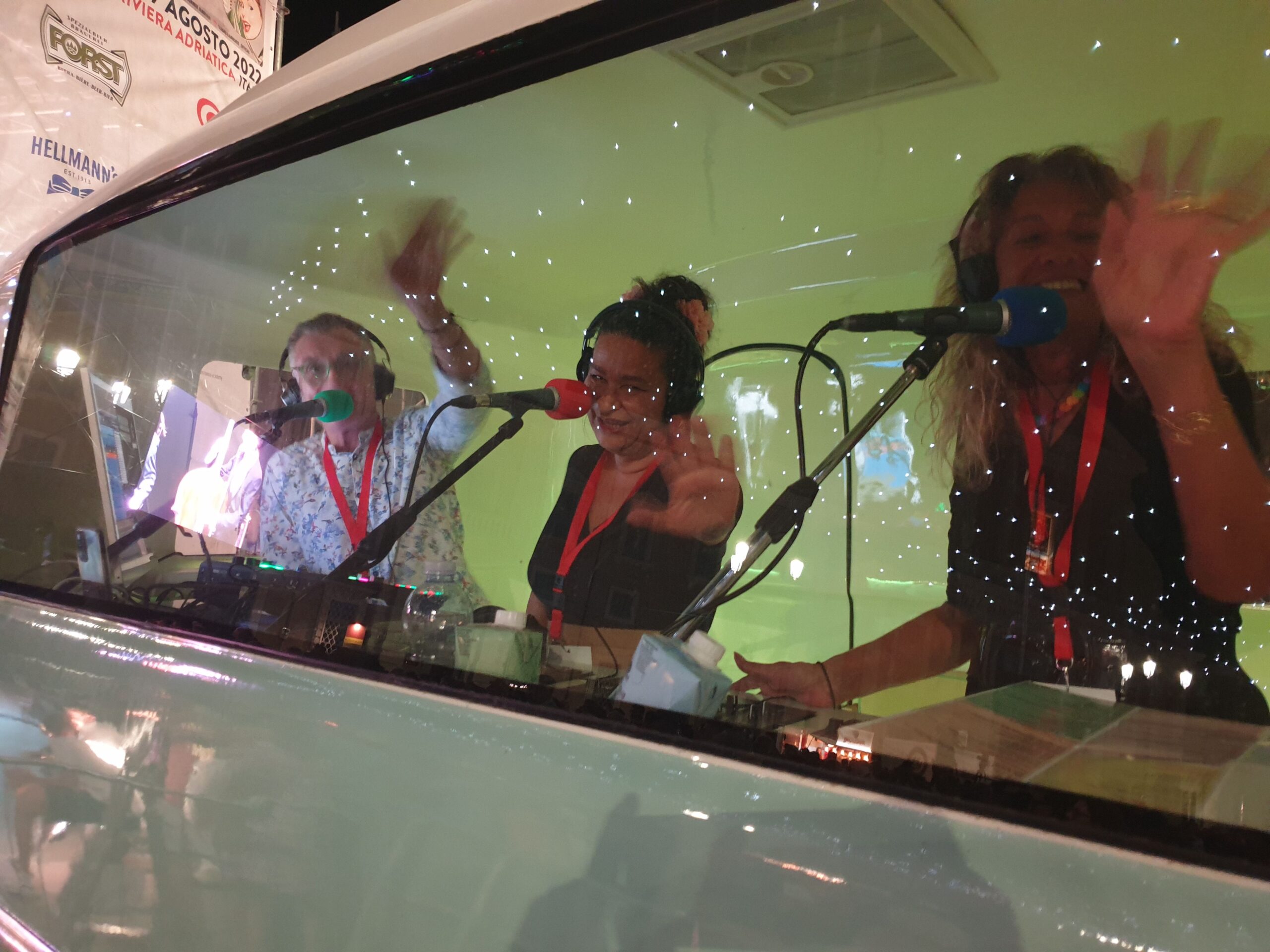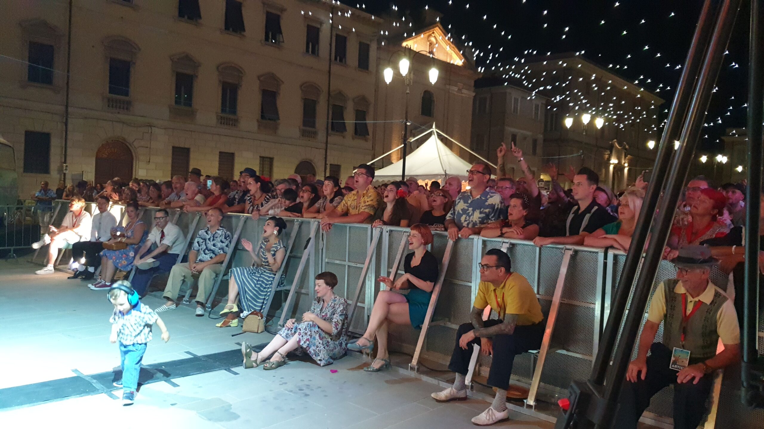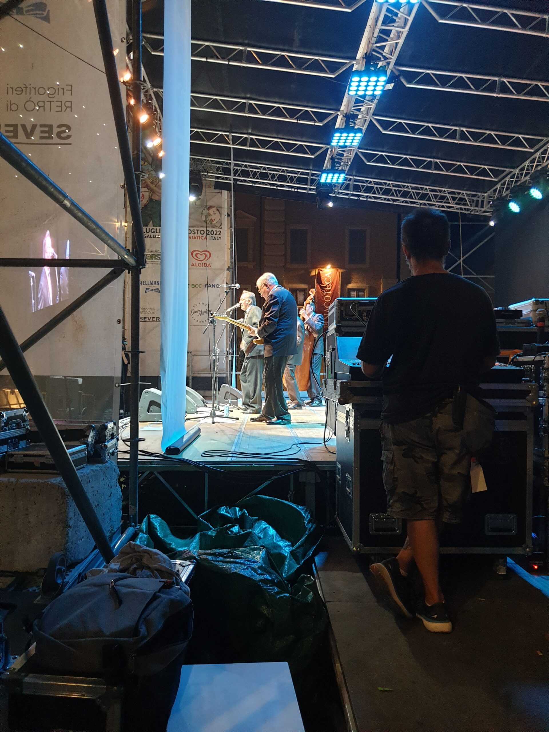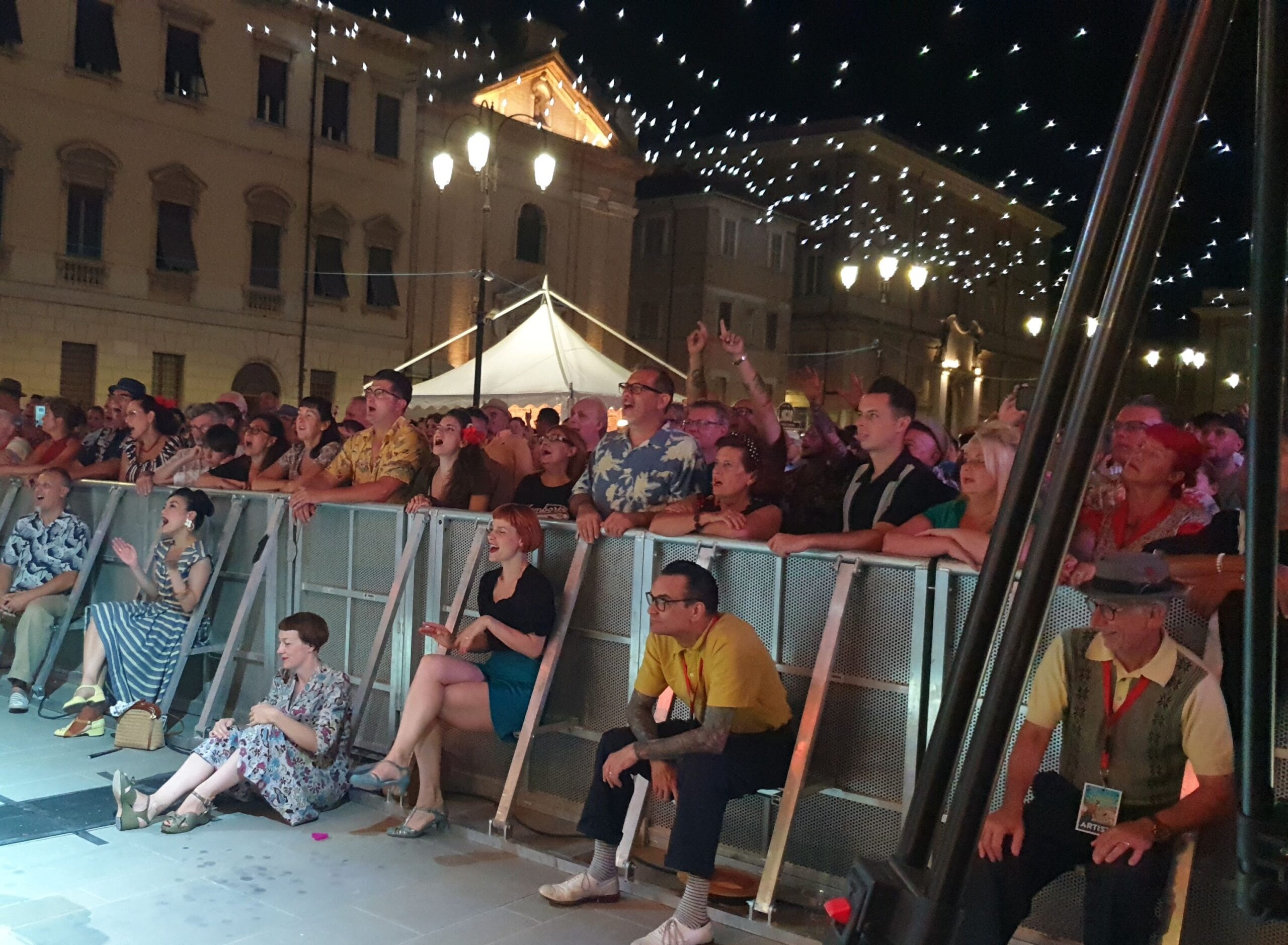 Quasi un’ora e mezza di musica mozzafiato con tre bis. Accidenti! E chi se lo sarebbe aspettato. E al termine ancora fiato e spirito per salutare amici e fans (alcuni giunti da molto lontano) e disponibili a una miriade di selfie. Alla faccia di qualche nostro artista nazionale che fa il prezioso o peggio pure se la tira… E la piazza? Una distesa compatta che si muoveva ad onda (c’era ovviamente chi ballava). E prima di tutto questo una visita alla roulotte di Radio Arancia accolto da Gigio Brecciaroli insieme a Raffaela Lattanzi e Felix: quattro chiacchiere, qualche commento e sempre una piacevole compagnia. E prima di lasciare la piazza l’incontro con Greg: sarà con due diverse band protagonista di diverse serate a iniziare dal 3 agosto dove però la stella indiscussa è Chubby Checker, ‘inventore del Twist.