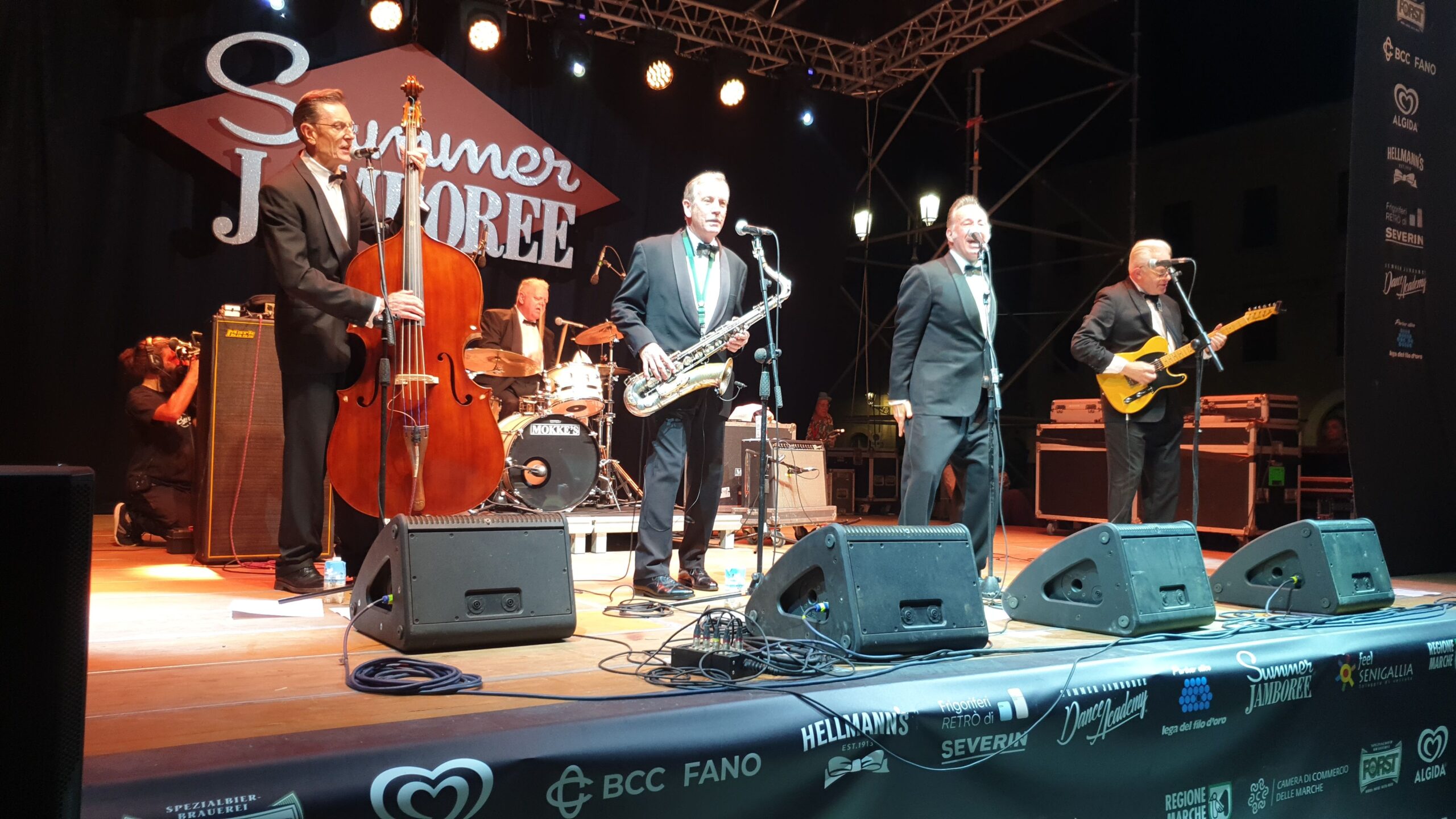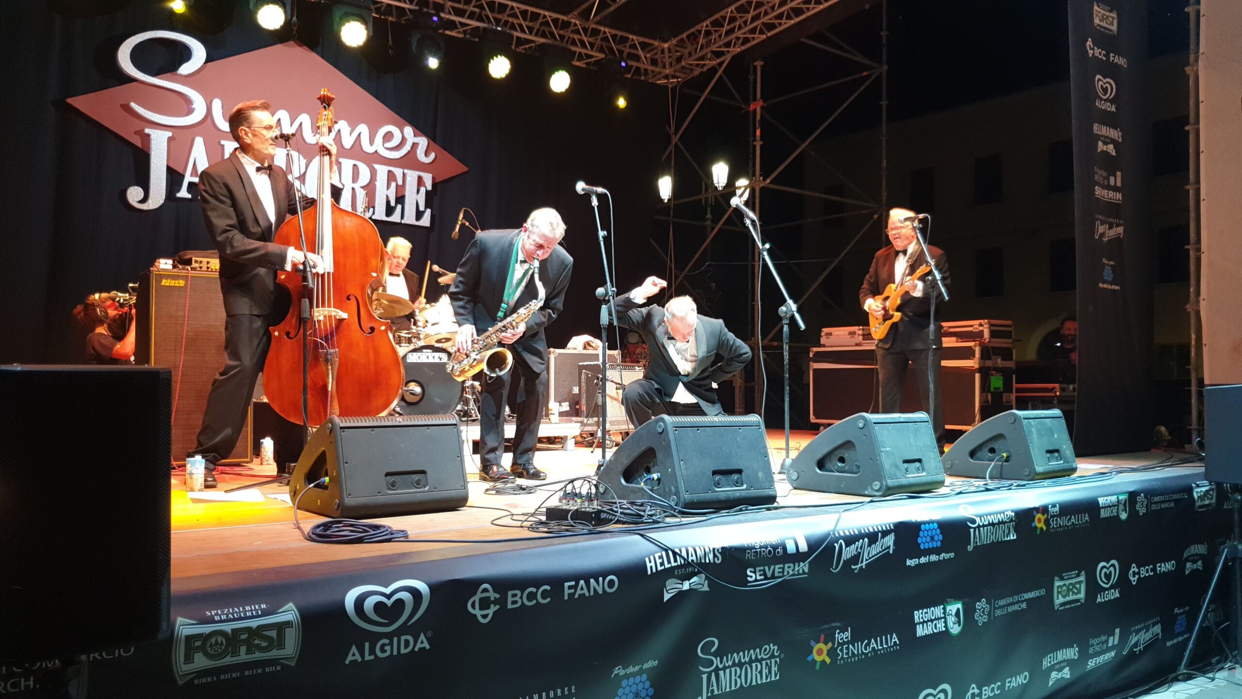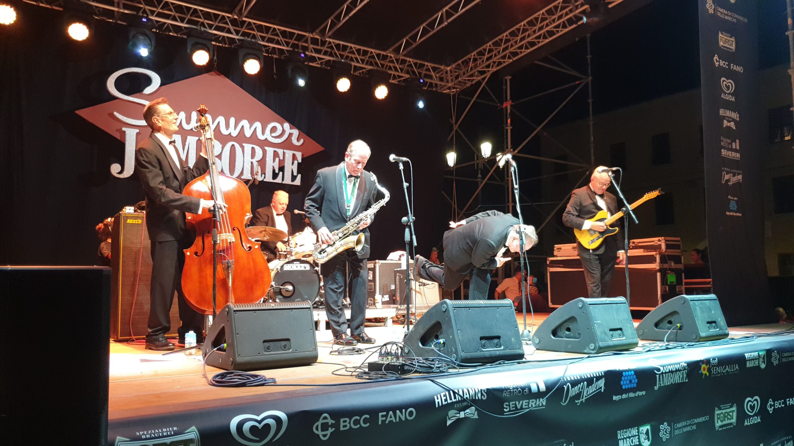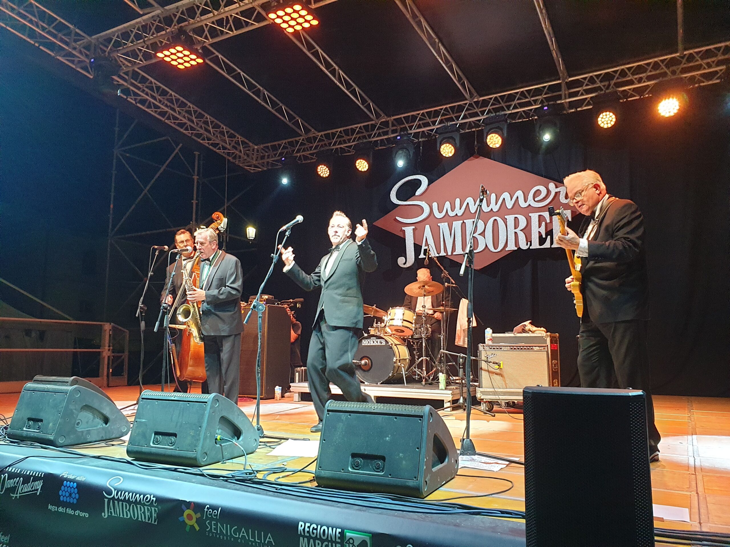 Che spettacolo! Ma che tipo di pile usano (ricordando una martellante pubblicità dove l’orsetto non si ferma mai)? La anteprima mondiale della reunion dopo 40 anni degli The Stargazers è stata un gran regalo degli organizzatori del Summer Jamboree di Senigallia (giunto quest’anno alle 22esima edizione). Giovanotti di oltre 70 anni che hanno dato vita sul palco di Piazza Garibaldi a un concerto dalla vitalità impressionante, soprattutto da parte del cantante Danny Brittain e dal batterista Ricky Lee Brawn. Ma non sono rimasti indietro Peter Davenport alla chitarra, John Wallace al sassofono e Anders Janes al contrabbasso.