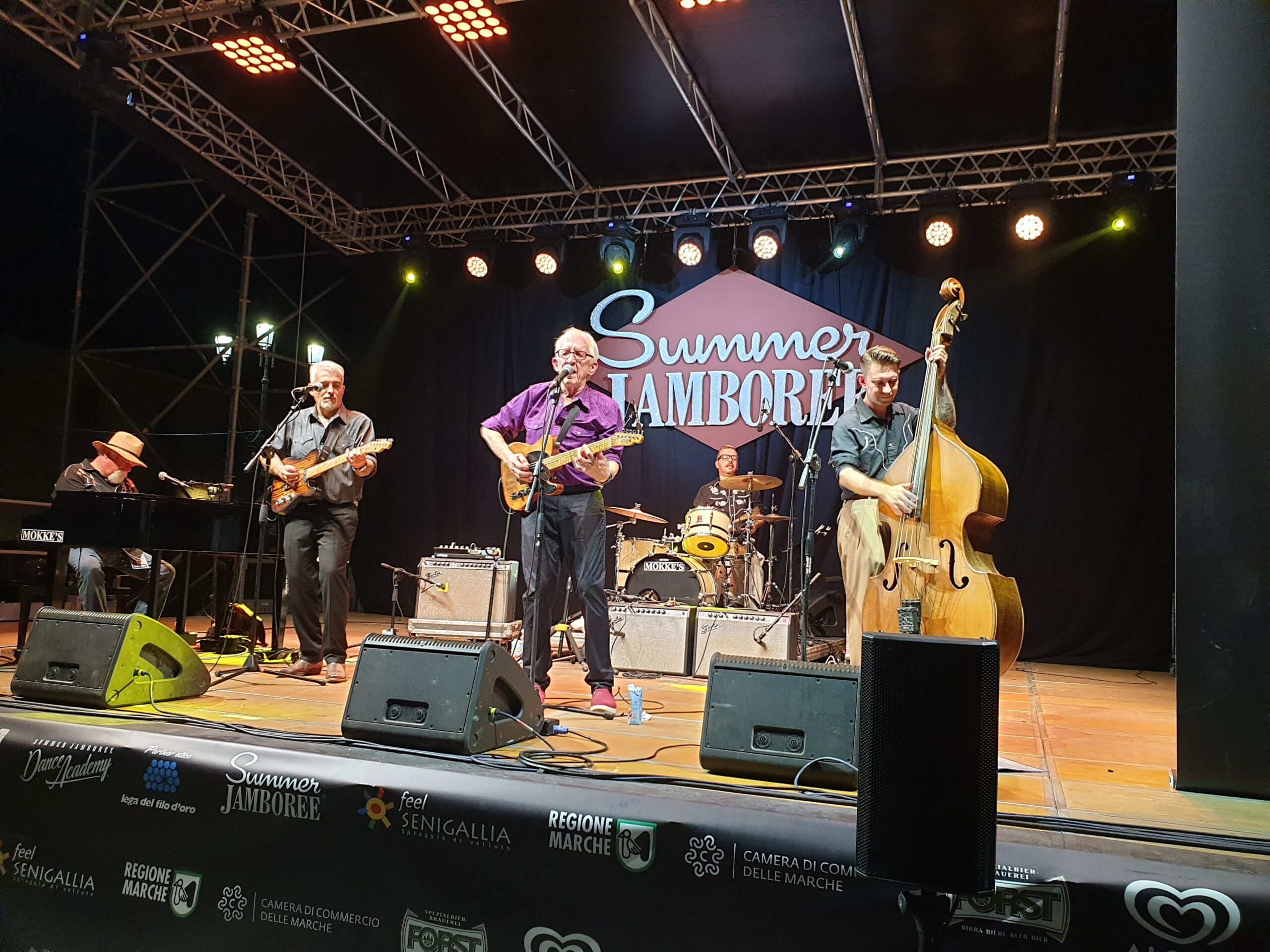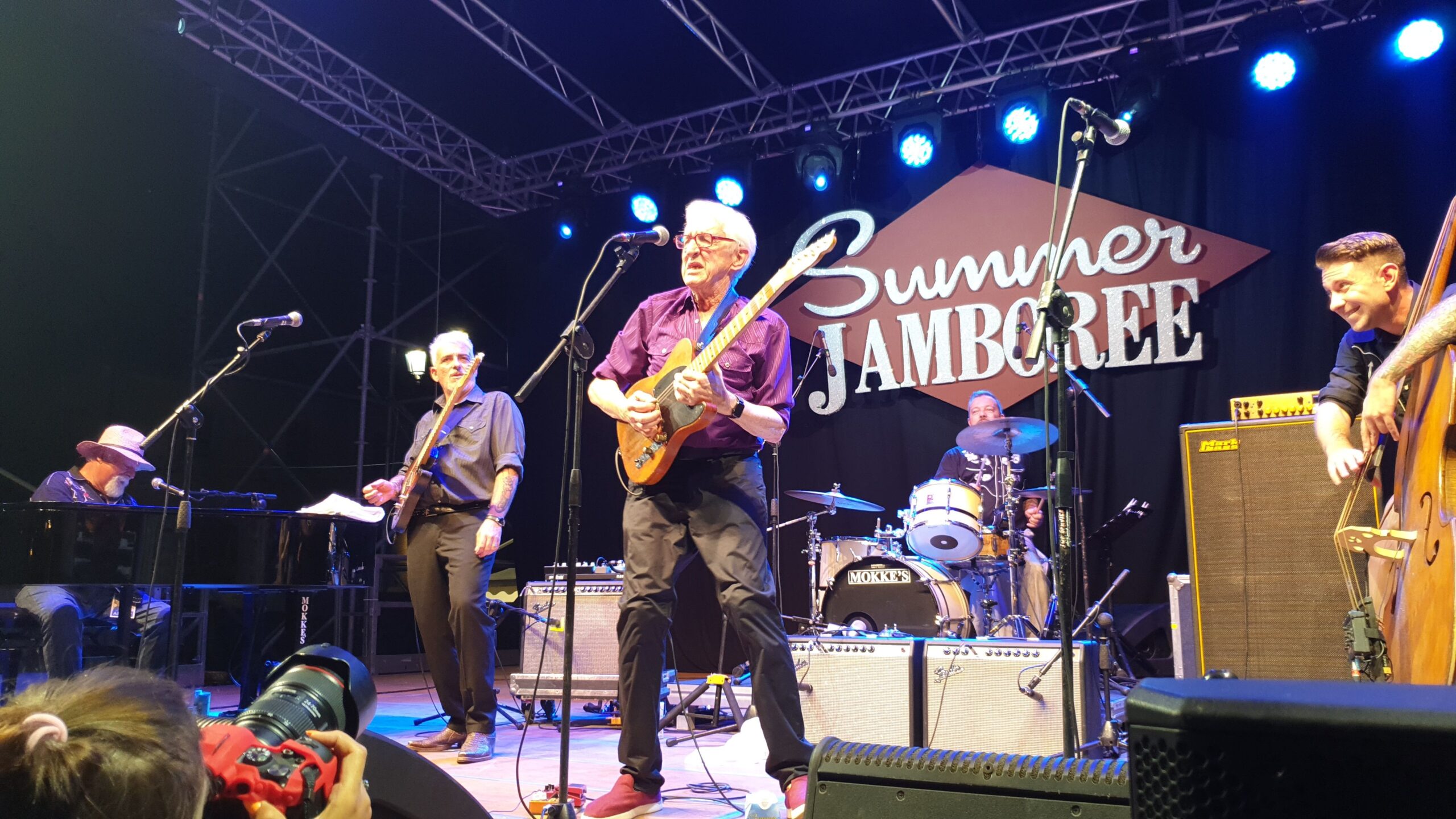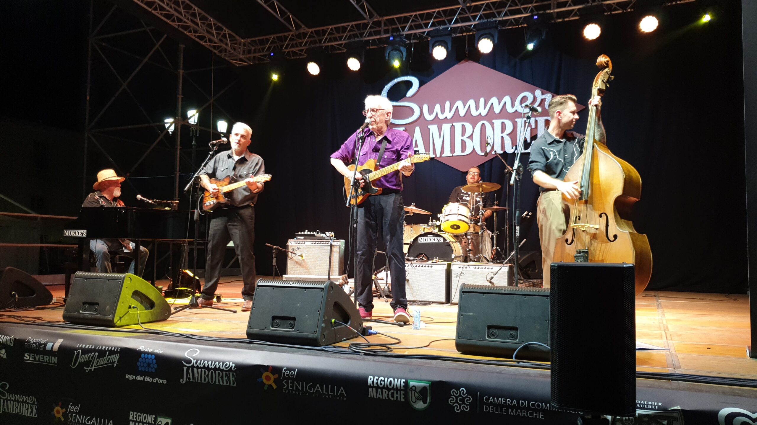 Il Summer Jamboree riserva sempre delle sorprese. Non conoscevo, se non di nome, il chitarrista Bill Kirchen (vaga somiglianza con Woody Allen) e ne sono rimasto affascinato. Kirchen, 74 anni e grande vitalità (nulla da dire il rock è un elisir di lunga vita), ha dominato il palco di Piazza Garibaldi di Senigallia, ancora una volta strapiena, con la sua chitarra. Era accompagnato dai Don Diego Trio: applausi anche per loro che in diverse occasioni hanno dovuto improvvisare sui cambi repentini di scaletta.