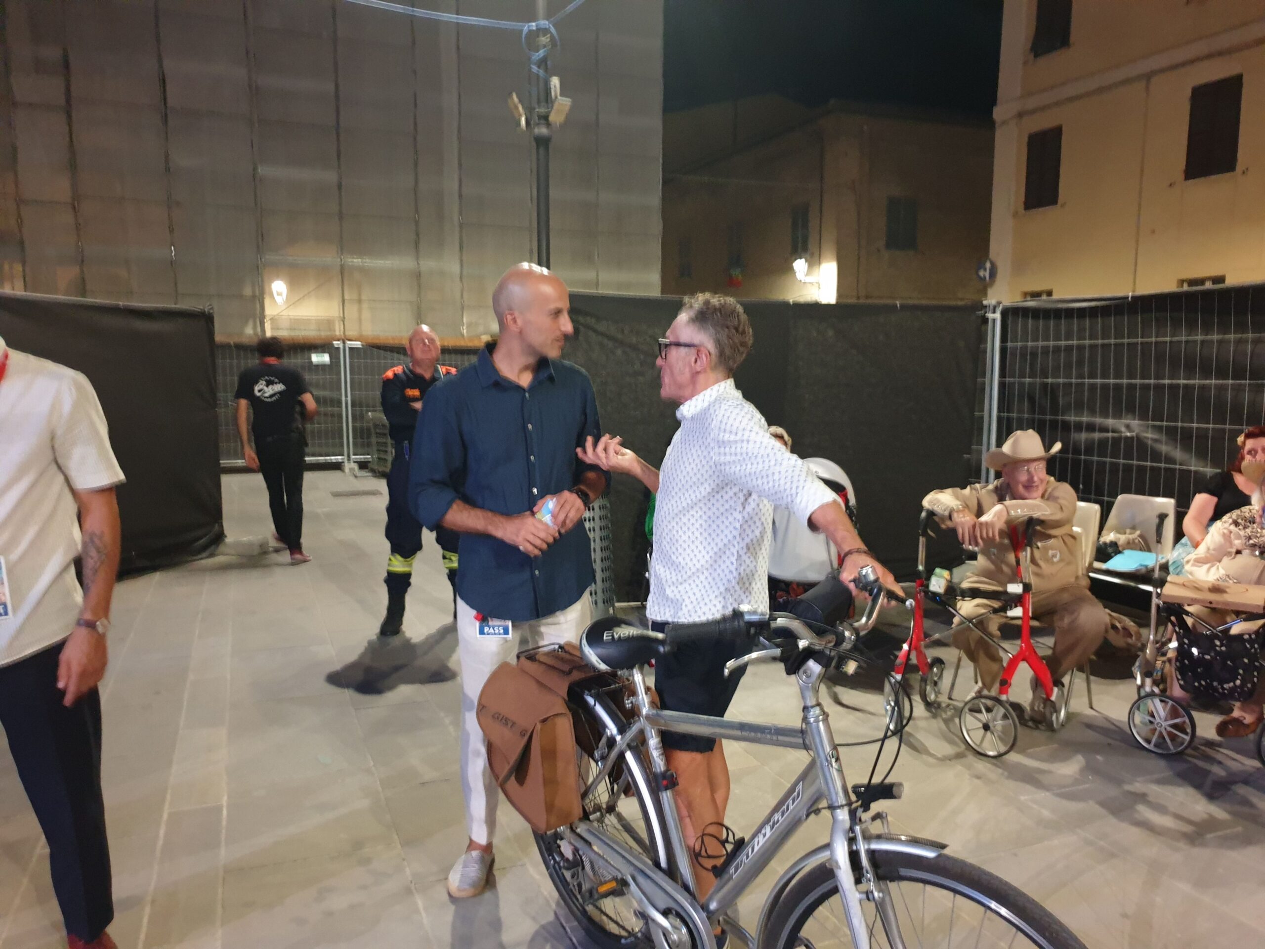Ieri (2 agosto) come esibizione conclusiva prima dei bis, un 7 minuti di storia del rock con gli incipit dei brani che sono rimasti nell’enciclopedia della musica: fantastico. Nel backstage, durante il rito delle foto (grazie per la disponibilità a Irene), ho cercato di trasmettergli questo mio pensiero. E dato che il mio inglese è ai minimi termini il dialogo si è svolto grosso modo così: “hi, i don’t speak english” – “hi, i don’t speak italian” – “lei è un grande… big… in seven minutes ha fatto the rock history…” Sguardo stupito e poi divertito: aveva capito… “thank you very much thank you”. E sono soddisfazioni!