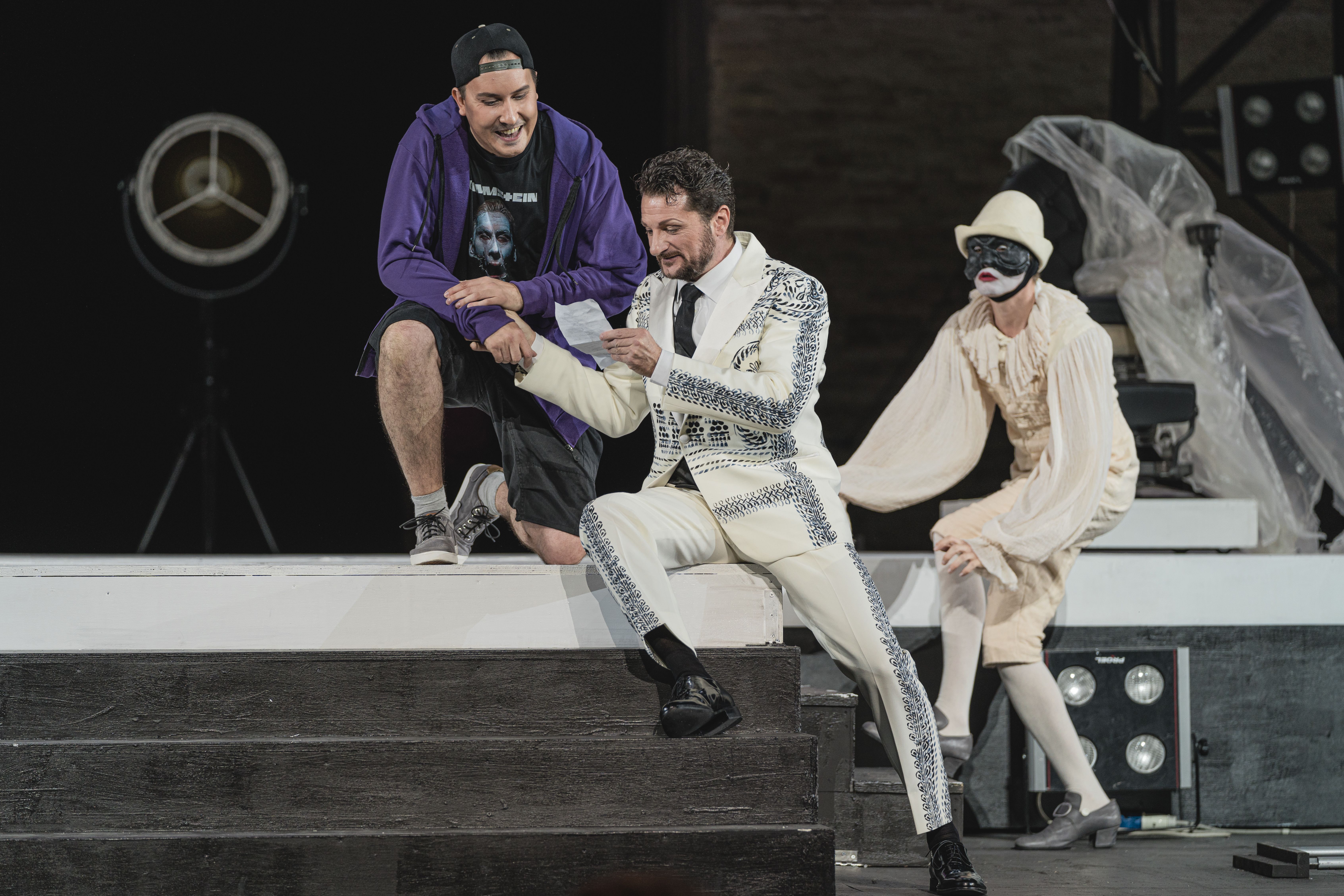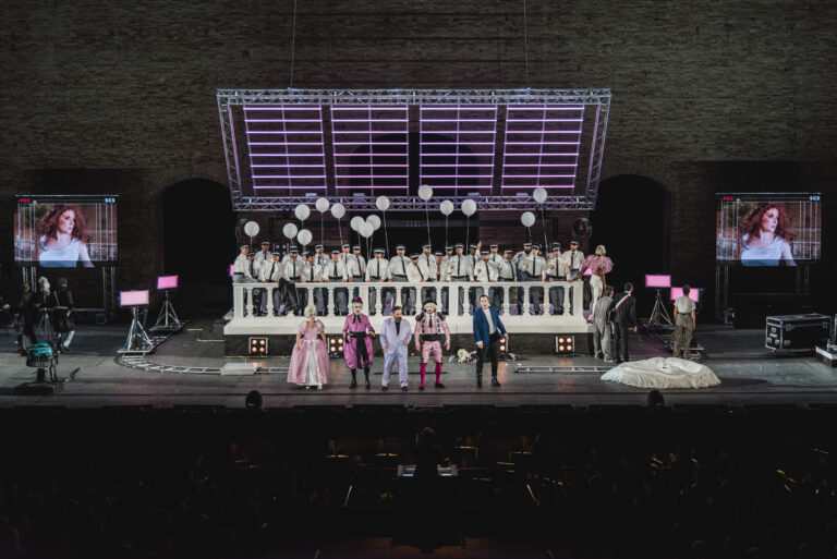 Questa sera, domenica 14 agosto, torna in scena allo Sferisterio dopo il debutto applauditissimo di venerdi Il barbiere di Siviglia, capolavoro buffo del più celebre e celebrato compositore marchigiano, Gioachino Rossini (altre repliche venerdì 19 e domenica 21 agosto). L’opera ha la regia di Daniele Menghini, le scene di Davide Signorini, i costumi di Nika Campisi, le luci di Simone De Angelis, i video di Stefano Teodori; si tratta del progetto vincitore del concorso internazionale riservato ad artisti under35, realizzato nel 2020 dal Macerata Opera Festival in collaborazione con Opera Europa e il Rossini Opera Festival; a presiedere la giuria c’era il regista inglese Graham Vick scomparso un anno fa, al quale questa nuova produzione del MOF è dedicata: «Sono convinto – dichiara il direttore artistico Paolo Pinamonti – che il lavoro di Graham Vick abbia definito, assieme all’attività di altri importanti registi contemporanei, alcuni chiari protocolli sul significato e sull’importanza del lavoro registico nel campo dell’opera lirica».