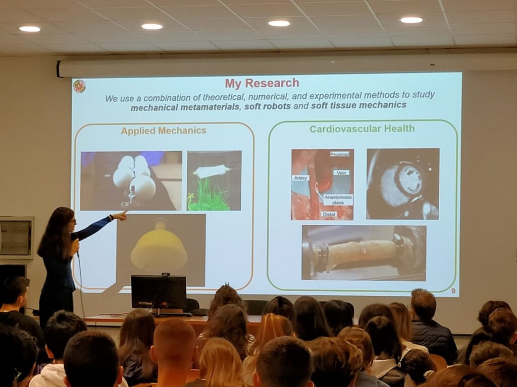 Eleonora con il suo gruppo di ricerca svolge studi su materiali biocompatibili, utilizzabili nei settori della meccanica applicata e della cardiologia come le protesi per le arterie.