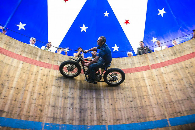 L’idea, risalente all’inizio del secolo scorso, era quella di ricreare all’interno di una gigantesca “botte” di legno dal diametro di 10 mt e dall’ altezza di 5 mt, le corse su motocicletta che si vedevano nei velodromi con pista di legno. È quindi una specialità di “stunt ridin” ante-litteram, veramente preistorica.