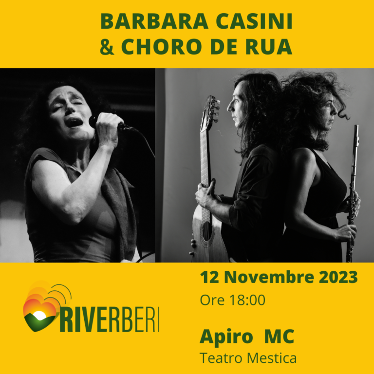 Barbara Casini, una delle maggiori interpreti del repertorio brasiliano d’autore, in questo concerto ha voluto unire la sua curiosità e versatilità alla straordinaria bravura e affiatamento della flautista Barbara Piperno e il chitarrista Marco Ruviaro (il duo CHORO DE RUA) per affrontare il repertorio dello Choro cantato, attingendo a grandi classici e composizioni di autori più recenti, sia allargando lo sguardo su altri generi profondamente legati alla tradizione della musica popolare del Brasile.