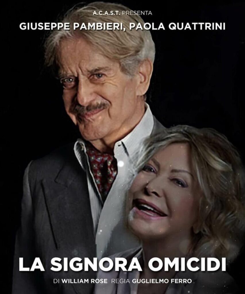 Quindici giorni più tardi. Il 17 novembre, sarà LA SIGNORA OMICIDI, adattamento dal racconto di William Rose, rielaborato da Mario Scaletta per la regia di Guglielmo Ferro. In scena Giuseppe Pambieri e Paola Quattrini. Commedia ricca di humour e di divertenti intrighi, situazioni ambigue ed equivoci esilaranti, ambientato in una Londra anni ‘50.