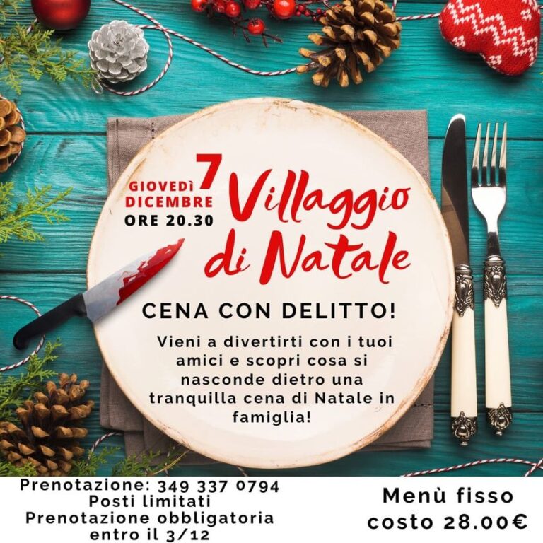 L’anteprima del Villaggio sarà giovedì 7 alle ore 20.30, con una curiosa Cena con delitto, durante la quale, attraverso sfide ed enigmi da risolvere insieme alla propria squadra di amici e amiche, si potrà scoprire il colpevole e allo stesso tempo sostenere, divertendosi, le attività Caritas. È consigliato partecipare in gruppi di 6/8 persone, per affrontare al meglio questa “tranquilla” cena di Natale con menù fisso, e prenotare al 349.3370794 entro lunedì 4 dicembre.
