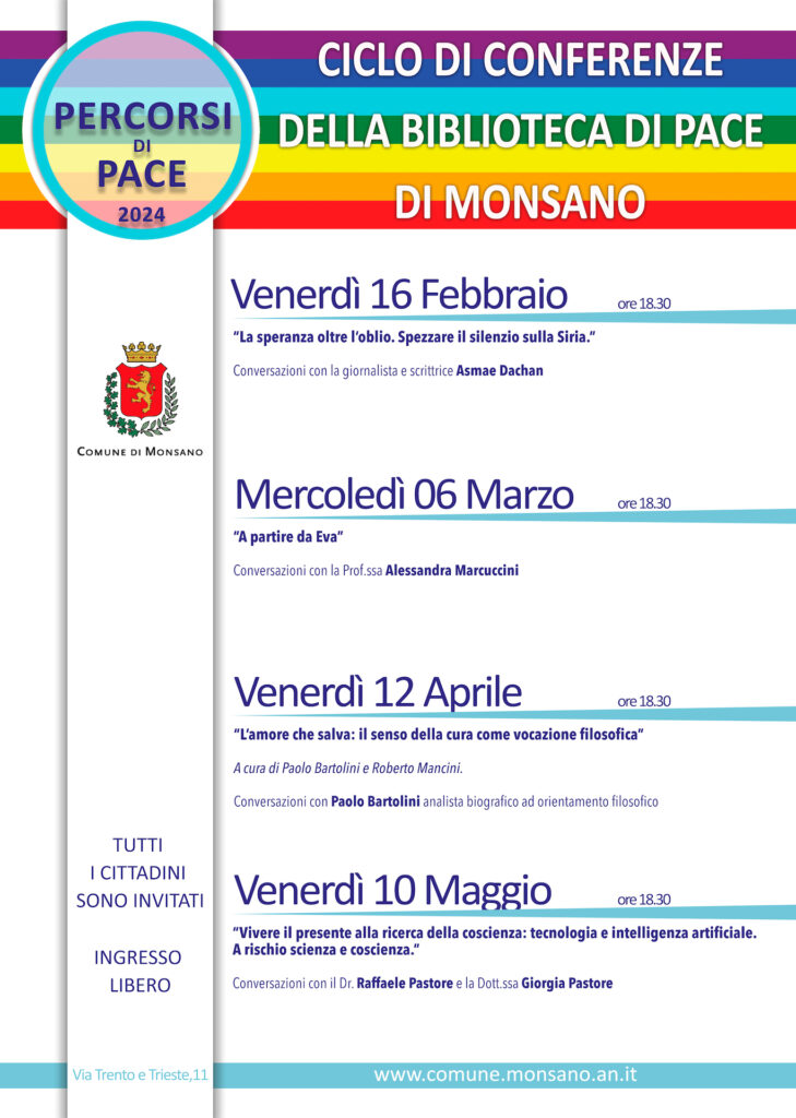 A Monsano tornano i Percorsi di Pace, ciclo di conferenze e incontri gratuiti alla “Biblioteca di Pace”