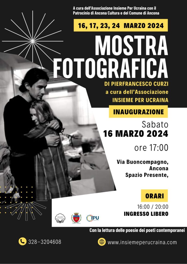 Si intitola ‘Nove viaggi in Ucraina’. L’evento, patrocinato dal Comune di Ancona e da Ancona Cultura, è stato organizzato dalla IPU, Insieme per Ucraina, un’associazione marchigiana, e si svolgerà su due fine settimana: 16-17 e 23-24 marzo 2024 con l’orario di apertura della mostra dalle 16 alle 20 (ingresso gratuito). Gli scatti sono stati realizzati da Pierfrancesco Curzi, giornalista e scrittore marchigiano che dall’inizio di marzo del 2022 ha compiuto diverse missioni in Ucraina realizzando una serie di reportage giornalistici.