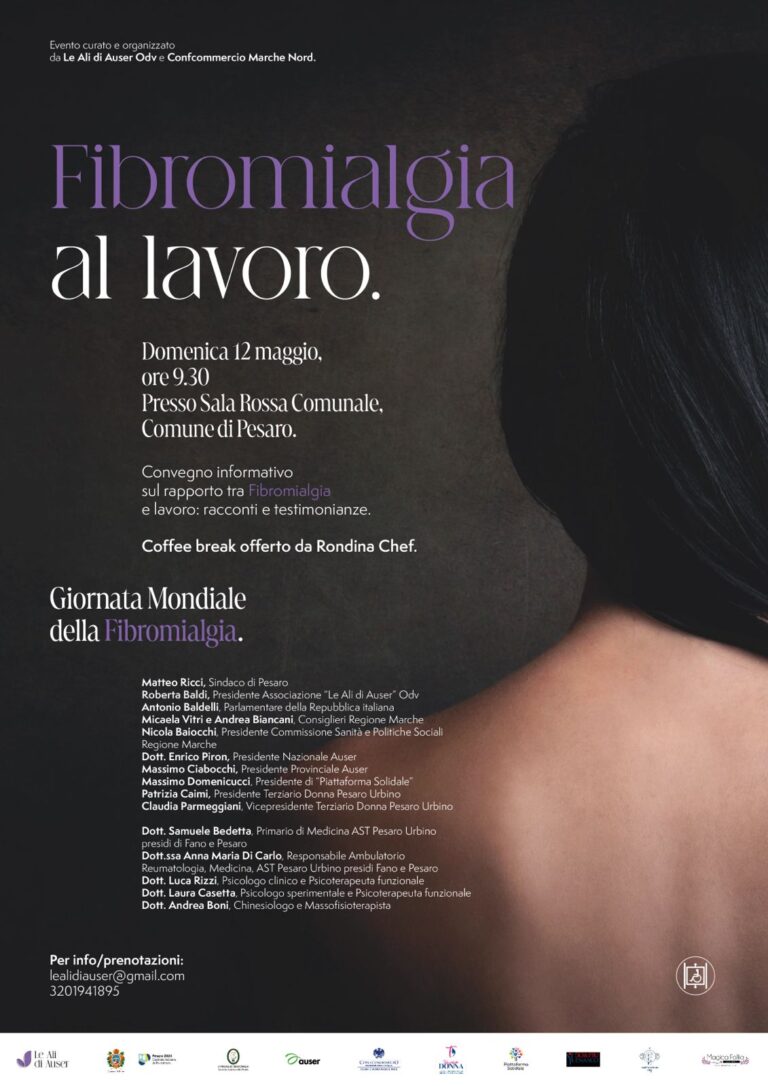 In occasione della Giornata Mondiale della Fibromialgia, domenica 12 maggio alle 9.30, la Sala Rossa del Comune di Pesaro ospita il convegno ’Fibromialgia al lavoro’. Un evento informativo sul rapporto tra fibromialgia e lavoro, con racconti e testimonianze, organizzato da Le Ali di Auser Odv e Confcommercio Marche Nord.