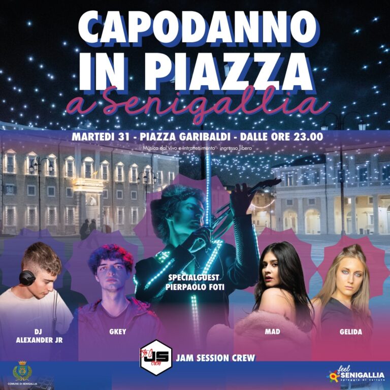 L’aria di festa si respira già a Senigallia! La città si prepara ad accogliere il nuovo anno con un evento imperdibile: il Capodanno in Piazza Garibaldi che dalle 23 in poi si trasformerà in una arena musicale. Una notte magica, ricca di sorprese, dove la musica sarà la protagonista indiscussa. Sul palco si alterneranno grandi artisti come Gelida, MAD, dj Alexander Jr, GKey e JAM. A far da special guest Pierpaolo Foti, pronto a infiammare la piazza con la sua musica. Attesa per la coinvolgente per la performance della Jam Session Crew. E a mezzanotte sotto le mille luci della piazza il brindisi augurale. Ingresso gratuito,
