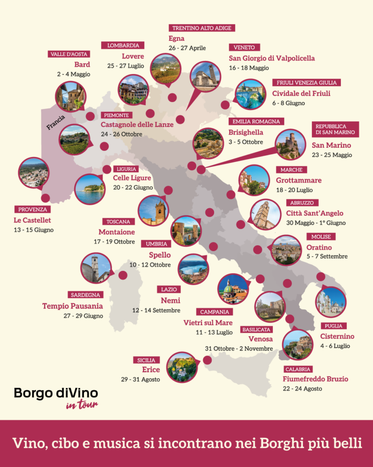 Borgo diVino in tour è promosso dall’Associazione “I Borghi più belli d’Italia” ed è organizzato