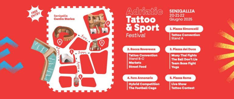 Dal 20 al 22 giugno (per tre giorni, dalle 16 alle 2) Senigallia diventa il palcoscenico di una manifestazione unica che celebra l’arte del tatuaggio e la passione per lo sport. Durante questi tre giorni, la città si trasforma in una galleria d’arte a cielo aperto e in un’arena di attività dinamiche, pronta ad accogliere migliaia di visitatori e appassionati. L’iniziativa, a ingresso gratuito, promette un’esperienza immersiva che unisce tradizione, innovazione e cultura urbana, valorizzando ogni angolo storico della città con l’energia di un evento collettivo e partecipativo .