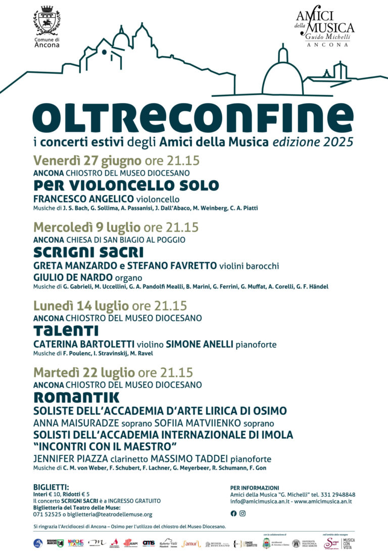 «Oltreconfine è un invito a superare le barriere culturali, a lasciarsi condurre dal fluire armonico di generi e stili diversi tra loro, ma uniti dall’esigenza esistenziale di esprimersi con i suoni – le parole del direttore artistico degli Amici della Musica di Ancona, Fabio Tiberi -. Oltreconfine è un impulso alla curiosità, così abbiamo immaginato questa rassegna. Non è dunque casuale la scelta di affidarsi a interpreti giovani e di talento, in grado di cogliere dal passato quello slancio indispensabile per muovere verso il futuro. Al di là di steccati e confini e al dì fuori di teatri e sale da concerto».