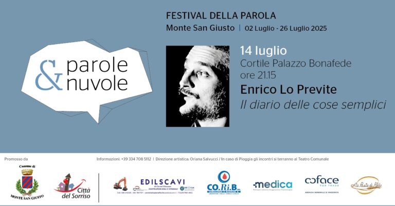 Parole&Nuvole, “Il diario delle cose semplici” con Enrico Lo Previte il 14 luglio a Monte San Giusto