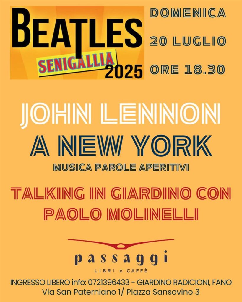 BeatleSenigallia 2025 riporta il mito dei Fab Four sulla “Spiaggia di Velluto” con due appuntamenti live a Senigallia, prosegue tra le suggestioni del Parco di Villa Coppetti a Castelbellino con l’energia di The CrossWalkers e si chiude a Fano con un affascinante storytelling dedicato agli “anni politici” di John Lennon a New York. Quattro tappe, quattro esperienze uniche per rivivere le atmosfere dei Beatles e scoprire il lato più intimo e impegnato del loro batterista-poeta-sognatore.