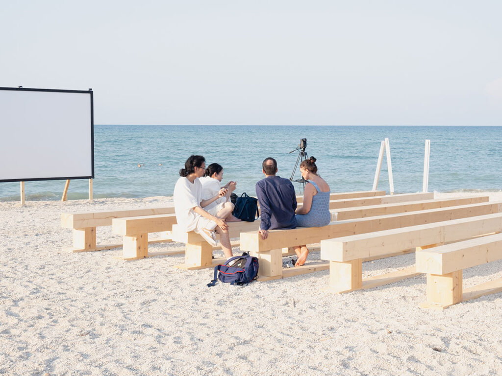 Lo spazio pubblico che accoglie il progetto è il risultato, come da consuetudine di Demanio Marittimo, di un concorso tra gli studenti della Facoltà di Architettura dell’Università di Lubiana, scuola partner della 15° edizione, che viene documentato in una mostra sulla spiaggia. Il progetto vincitore è KM-0.07 e i progettisti sono: Lenart Berdon, Sima Bucar Fiskin, Miha Kramberger, Ian Vidic.