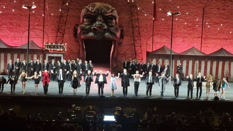 Nonostante qualche nube di troppo, l’uscita dal Festival è avvenuta in un clima di generale soddisfazione. Gli applausi conclusivi hanno salutato la serata con entusiasmo, testimoniando che professionalità e spirito di adattamento sono elementi chiave per vivere l’opera anche quando Giove Pluvio decide di invitarsi alla festa. Questa versione di “Rigoletto” al MOF dimostra come un allestimento capace di giocare sulle maschere – reali e metaforiche – possa restituire la forza espressiva dell’opera anche al pubblico più giovane. Tra tensione drammatica, grandi numeri d’insieme e solisti di rilievo, lo spettacolo conferma la vitalità del repertorio verdiano nel contesto estivo di Macerata.