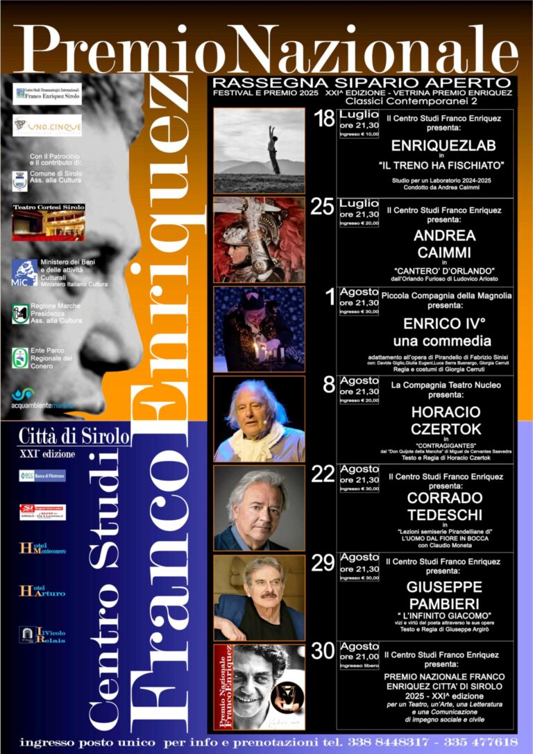 Per ulteriori dettagli, costi dei biglietti e agevolazioni consultare il sito del Centro Studi Franco Enriquez e del Teatro Cortesi di Sirolo o contattare cell. 338 844 8317 e 335 477 618. Costo del biglietto 30 euro.