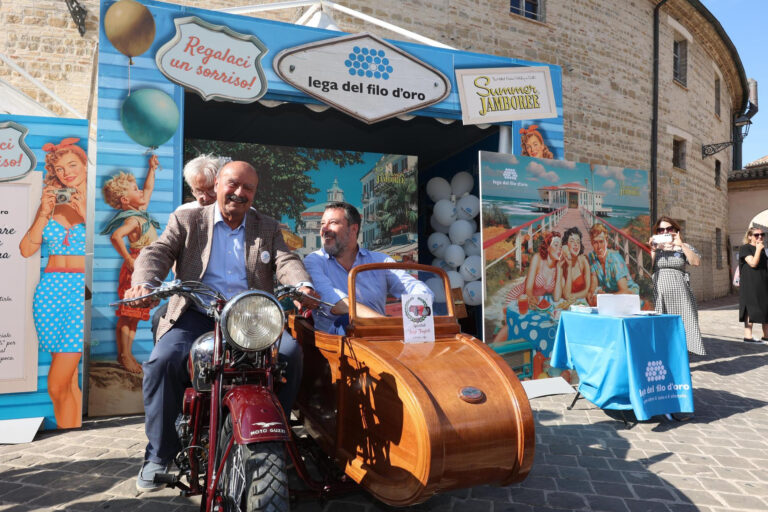 A seguire, si è recato presso lo stand della Fondazione Lega del Filo d’Oro, partner etico storico del Festival, dove ha incontrato il Presidente Rossano Bartoli e il team della Fondazione scattando qualche foto in un Sidecar d’epoca. Il tour è poi proseguito tra le aree centrali del Festival, con tappe in Piazza del Duca con tutti gli espositori pronti all’inizio del Festival soffermandosi sul Vintage al Barber Shop e proseguendo poi alla Rocca Roveresca, dove sull’Hera Stage stavano iniziando il soud check per il concerto della sera.