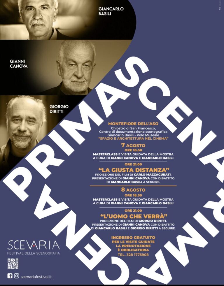 Dopo il successo delle tappe di Potenza Picena, Senigallia e Urbino, che hanno registrato una forte partecipazione di pubblico e ospitato nomi di rilievo internazionale, il festival Prima Scena, diretto dallo scenografo Giancarlo Basili, arriva a Montefiore dell’Aso (AP) con due giornate, il 7 e 8 agosto, interamente dedicate al rapporto tra racconto cinematografico e scenografia.