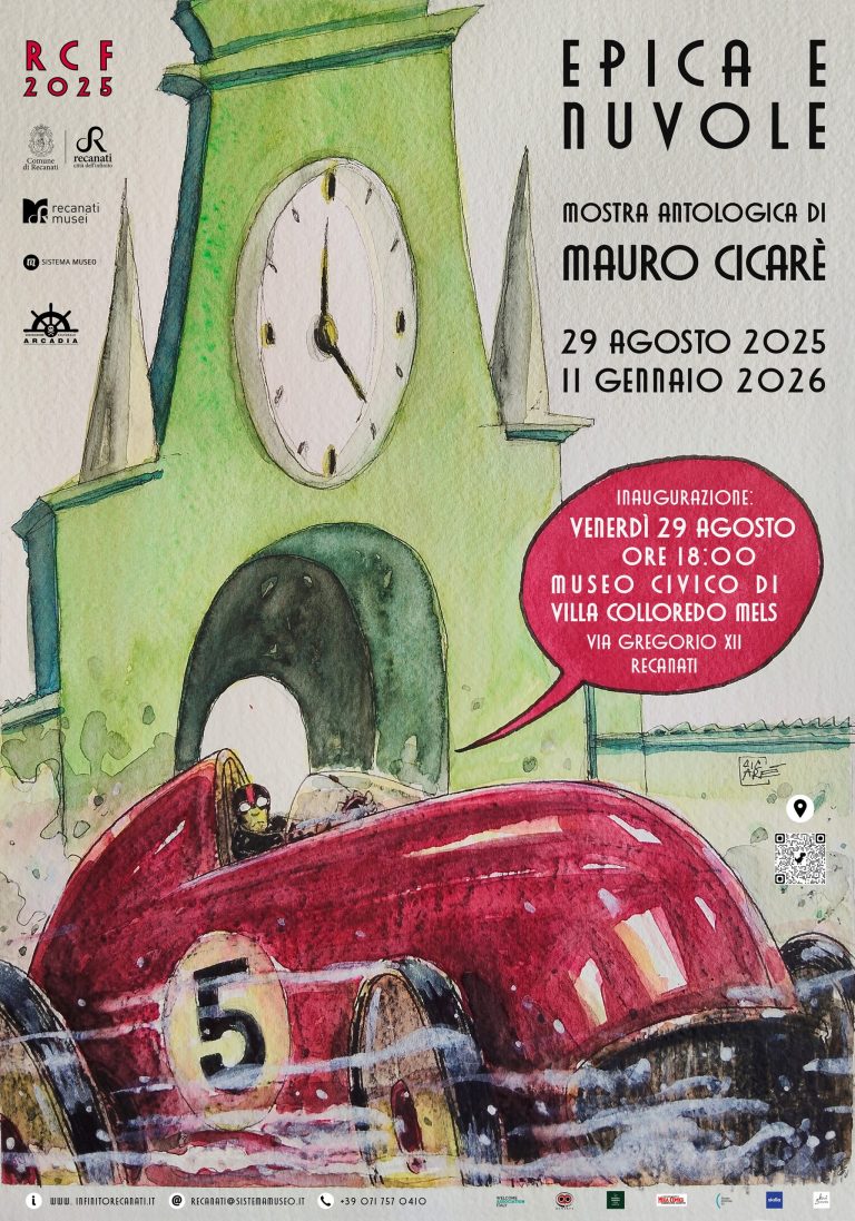 VENERDÌ 29 AGOSTO alle ore 18:30, nelle sale del MUSEO PINACOTECA CIVICA di VILLACOLLOREDO MELS a RECANATI, prenderà il via la grande mostra intitolata “Epica e Nuvole” antologica del fumettista Mauro Cicarè, dalle prime graffianti storie apparse su Frigidaire, Tempi Supplementari e L’Eternauta, alla maturità artistica de II Grifo e Heavy Metal U.S.A., fino alle epiche illustrazioni su II Caffè Illustrato legate ai grandi classici della narrativa e alle illustrazioni realizzate per i due libri dedicati alla storia e al mito dei nostri territori: Sibilla e La battaglia del Pian perduto, curati da Fabio Santilli. Un viaggio lungo oltre quarant’anni, attraverso l’Arte, la Letteratura, il Fumetto, la Bellezza.