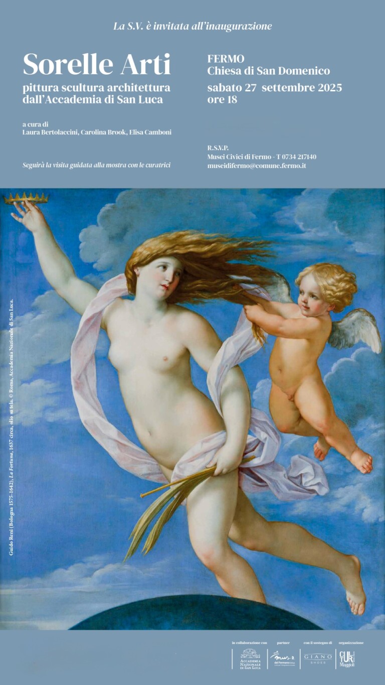 Dal 28 settembre 2025 al 1° febbraio 2026 i Musei di Fermo presentano a Palazzo dei Priori la mostra Sorelle Arti. Pittura scultura architettura dall’Accademia di San Luca, a cura di Laura Bertolaccini, Carolina Brook ed Elisa Camboni. L’inaugurazione si terrà sabato 27 settembre 2025, alle ore 18.