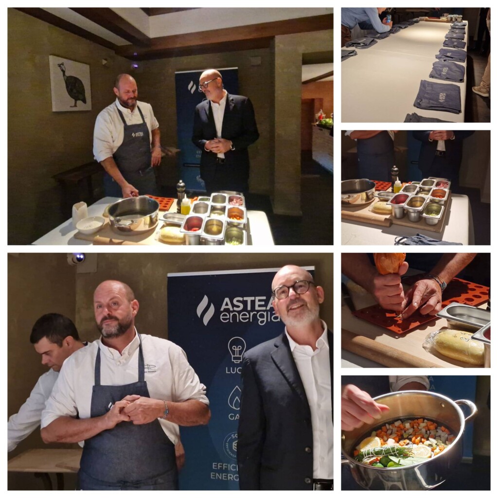 Gli ospiti sono stati chiamati a mettere le mani in pasta al grido di “di sì, chef” seguendo le indicazioni, dopo un breve ma esaustivo tutorial, di Recanati per preparare una ricetta di Andreina: gli gnocchi farciti con il sugo di capriolo. E mentre si procedeva a stendere la sfoglia e riempire gli gnocchi, i responsabili di Astea Energia hanno raccontato la loro “storia”.