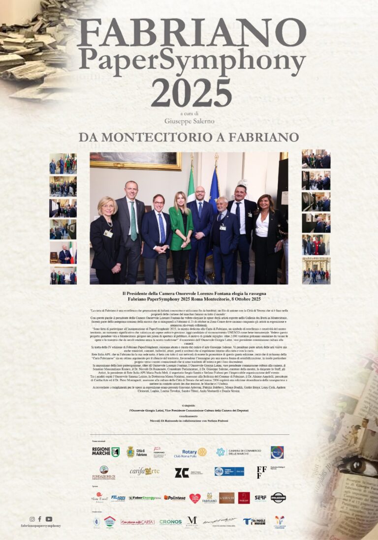 Il curatore Giuseppe Salerno ha ricordato come l’edizione 2025 segni un ulteriore passo avanti in un percorso cominciato quattro anni fa, cresciuto di anno in anno attraverso nuove collaborazioni e sperimentazioni. Fabriano PaperSymphony quest’anno torna nella sua città con una mostra che unisce arte visiva, danza, suono e materia, restituendo alla carta il suo valore originario di strumento di dialogo, comunicazione e bellezza.