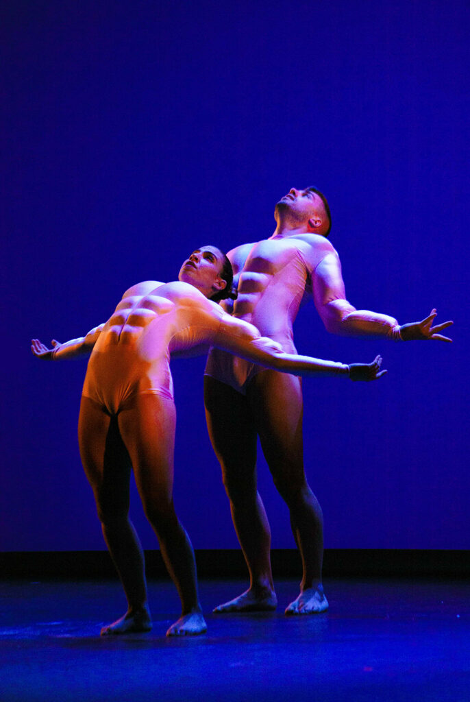 Aliena è un’opera che esplora i confini tra forma e contenuto, trasformando il corpo in un paesaggio in continua evoluzione. I danzatori, caratterizzati da muscolature estreme e movimenti fluidi ma inconsueti, plasmano forme che si rimodellano continuamente, diventando opere d’arte transitorie.