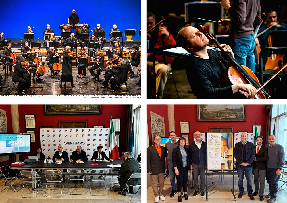 Mercoledì 19 novembre 2025, presso la Sala Rossa della Residenza Comunale di Pesaro, alla presenza del Vicesindaco e Assessore alla cultura Daniele Vimini, il Presidente e Sovrintendente della Sinfonica Rossini, M° Saul Salucci, ha presentato la Stagione Sinfonica 2025-2026 assieme al direttore artistico della compagine, M° Paolo Rosetti e alla Presidente degli Amici dell’Orchestra Sinfonica G. Rossini, avv. Pamela Salucci.