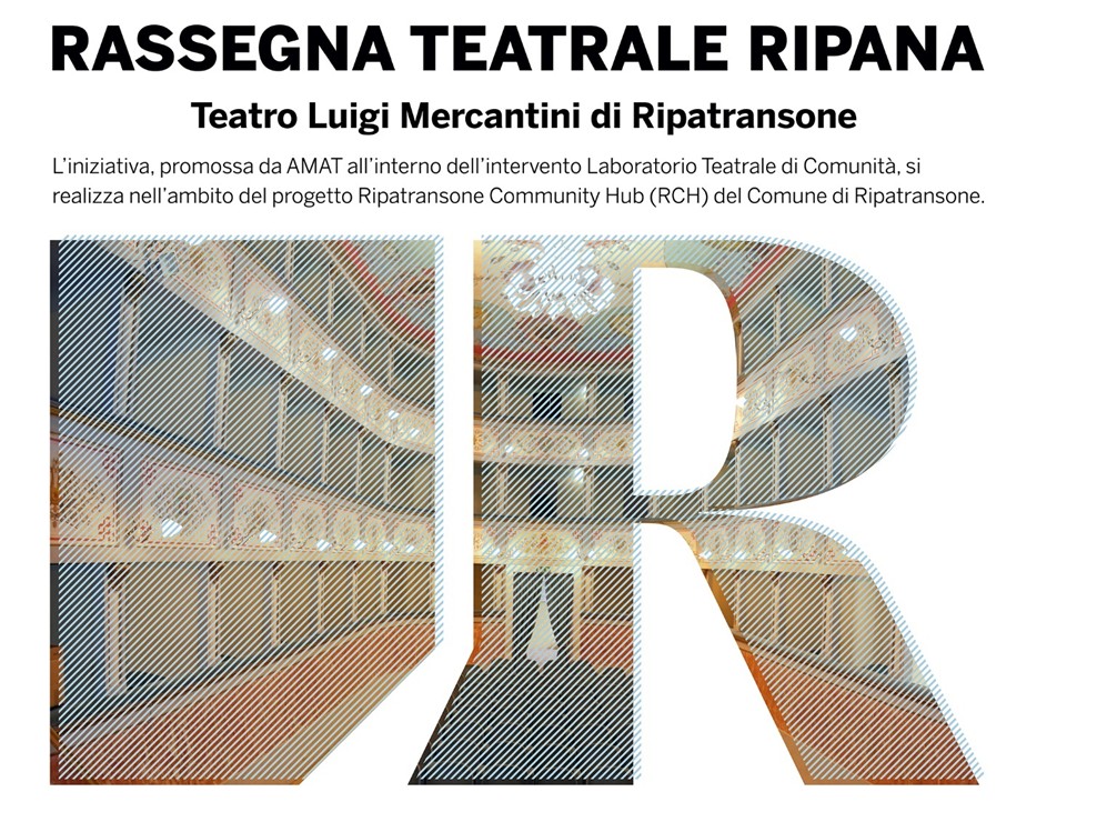 Tre appuntamenti da dicembre 2025 a febbraio 2026 per la rassegna del Teatro Luigi Mercantini di Ripatransone realizzata da AMAT all’interno dell’intervento Laboratorio Teatrale di Comunità nell’ambito del progetto Ripatransone Community Hub (RCH) del Comune di Ripatransone.