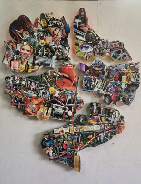 A cura di Paola Ballesi, la personale CTRL+Z di Matteo Costanzo, si articola come un percorso immersivo e concettualmente vibrante che invita il pubblico a riflettere sulle tensioni e le fragilità dell’epoca contemporanea. L’artista, attraverso collage, sticker-painting, video loop e installazioni, costruisce un universo visivo in cui la materia stessa della comunicazione – immagini, parole, icone, frammenti di informazione – viene decostruita e ricomposta in nuove forme di senso. Le sue opere, caratterizzate da una forte componente plastica e cromatica data dall’uso di polistirene estruso, plastica liquida e vernice acrilica, si presentano come una sorta di superfici radianti e instabili che rappresentano il disorientamento dell’umanità iperconnessa, prigioniera della sovrabbondanza informativa.