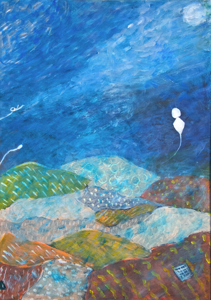 Le figure sintetiche proposte, ricordano all’ osservatore che siamo esseri piccoli e fragili di fronte allo spazio infinito dell’universo, ma anche entità leggere ed eteree, chiamate a vivere il nostro miracolo, attraversando le complessità della vita, immersi in una realtà onirica ed impalpabile. Allo stesso tempo, siamo anche esseri senzienti e pensanti, dotati di intelligenza e consapevolezza della nostra sorte umana e terrena. L’uomo, come ricordava Pascal è una “canna pensante”.