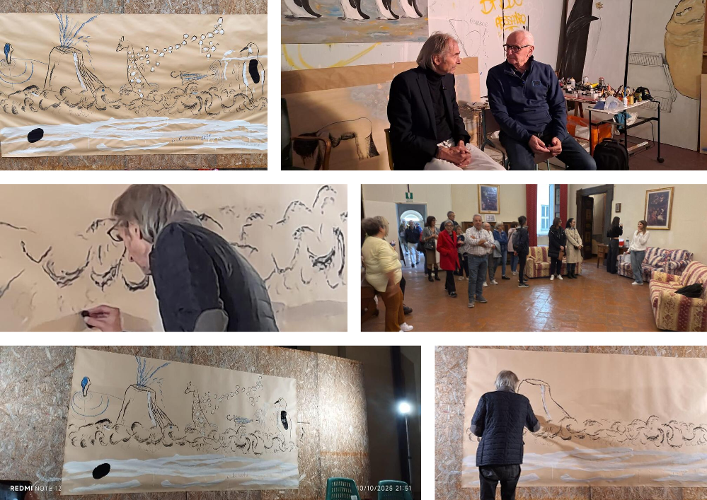E grazie di cuore all’artista Carlo Cecchi per aver donato al nostro gruppo FAI la bellissima opera realizzata dal vivo durante la serata d’anteprima di venerdì 10 ottobre”. Con il maestro Carlo Cecchi abbiamo una lunga amicizia di decenni. Ma ha parlato con noi con piacere anche del lavoro e delle domande che i tantissimi visitatori gli hanno rivolto, percorrendo l’immenso suo studio che domina, appunto, Palazzo Ripanti.