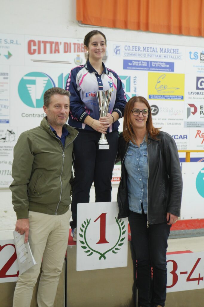 A primeggiare è stata la giovanissima Beatrice Cesoroni, atleta appartenente alla categoria juniores in forza alla ASD Bocciofila Tolentino, che ha firmato una splendida impresa superando in finale Alessio Foglia (Società Castelfidardo – AN) con il punteggio di 12-5.