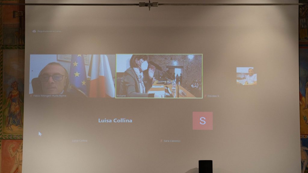Da remoto hanno partecipato: il prof. Fabio Mongelli, Presidente CIANS, Coordinamento delle Istituzioni AFAM non Statali del Ministero Università, dall’#India Mr. Devadasank, Direttore dell’Arise Tecnologyes con sede a #Dubai e #Nuova#Delhi, il commissario del Commonwealth Jones BB, e dal Brasile i proff. Francesco Trapasso e Lucila Campiglia dell’Università Santa Marcellina di San Paolo.