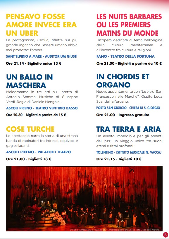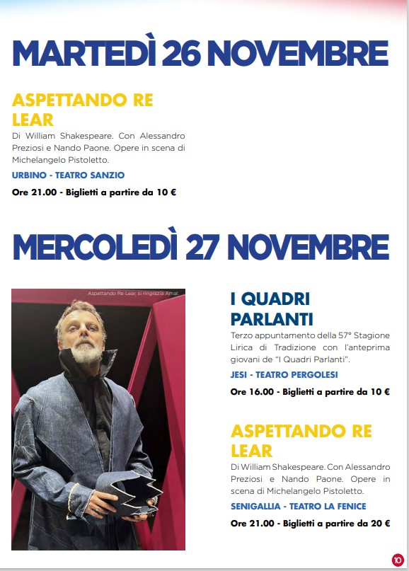 Confermate tutte le altre, quindi la tappa al teatro delle Muse di Ancona, dal 2 al 4 febbraio, e quella al teatro Ventidio Basso di Ascoli Piceno dal 9 all’11 marzo.