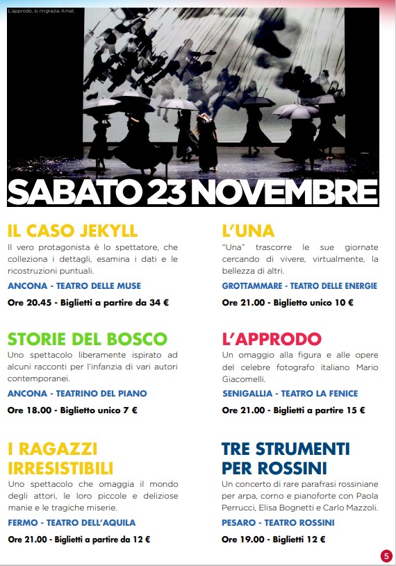 CMS – Consorzio Marche Spettacolo: ecco le proposte di alcuni eventi nelle Marche dal 21 al 27 novembre