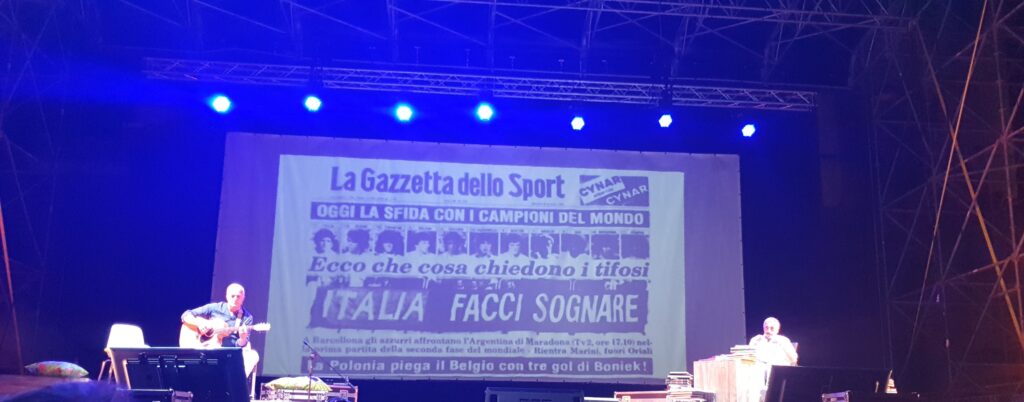 Buona la prima. Anzi, ottima. Lo spettacolo con Marino Bartoletti e Max Paiella “C’era una volta il Mundial. Quella sera c’eravamo tutti” ha fatto decisamente centro, già alla prima uscita ufficiale, dopo la data zero di Tolentino. Penultimo appuntamento di Porto Recanati Festival-Estate 2022 realizzato all’Arena Gigli, dalla collaborazione fra Comune e AMAT con il contributo di MiC e Regione Marche.